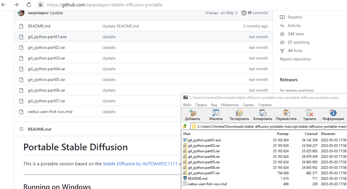 А потом смотрю на чужие "портативные" сборки Stable Diffusion, да ещё запакованные в RAR формат и загруженные кусочками в зону репозитория где должен находиться код, а не релизы, не в обиду сборщику, но это просто какой-то угар и троллинг над пользователями: