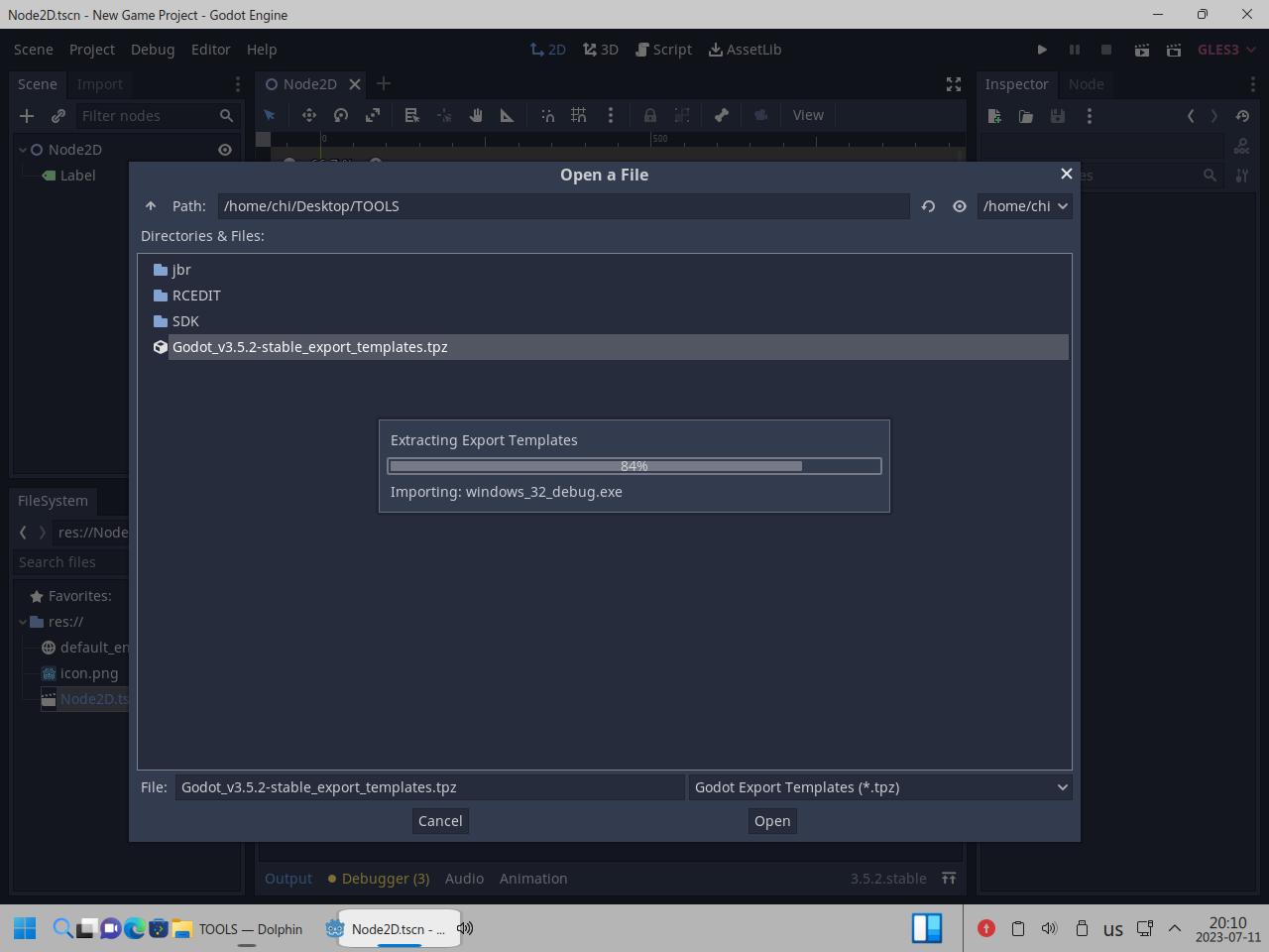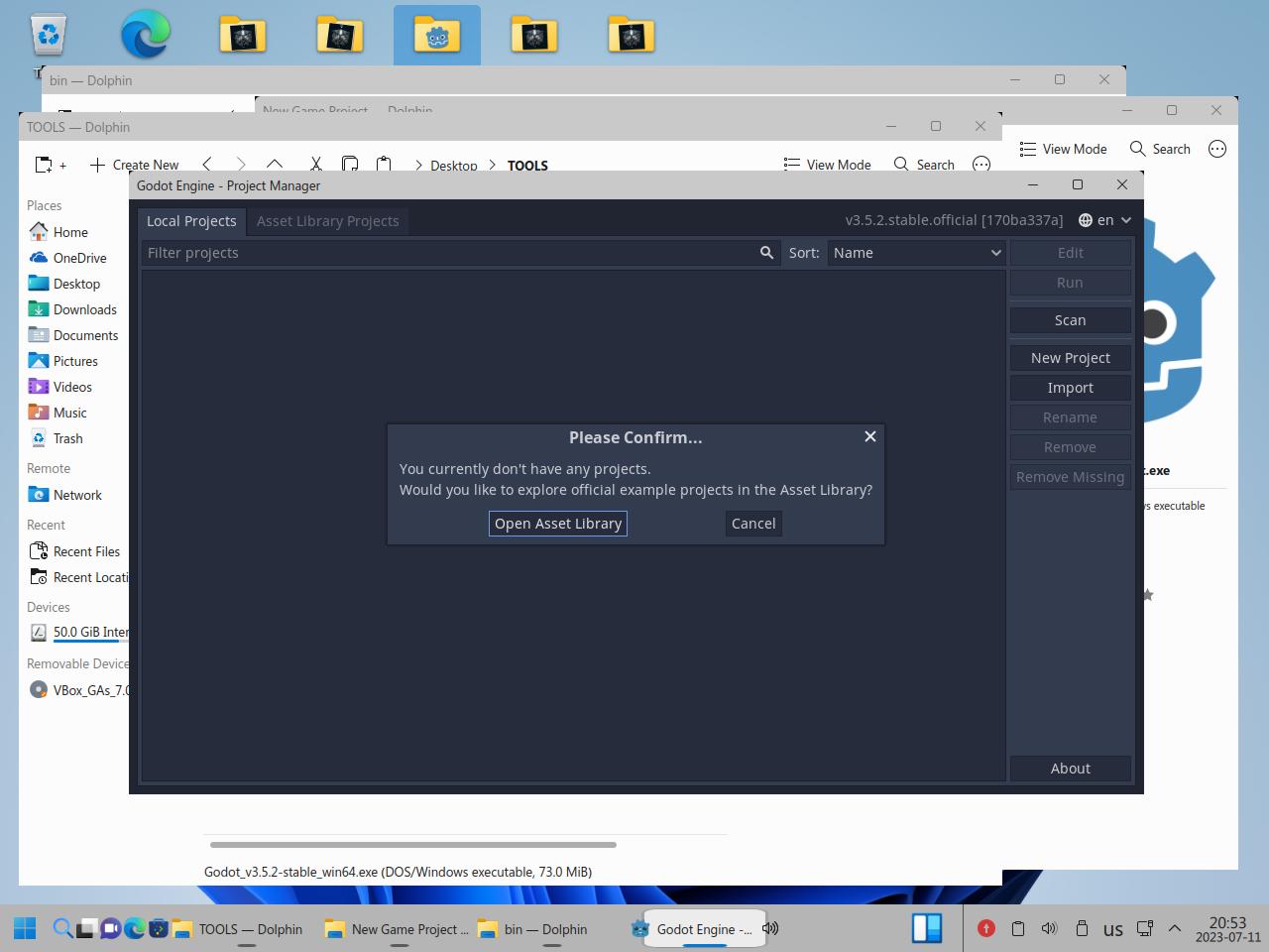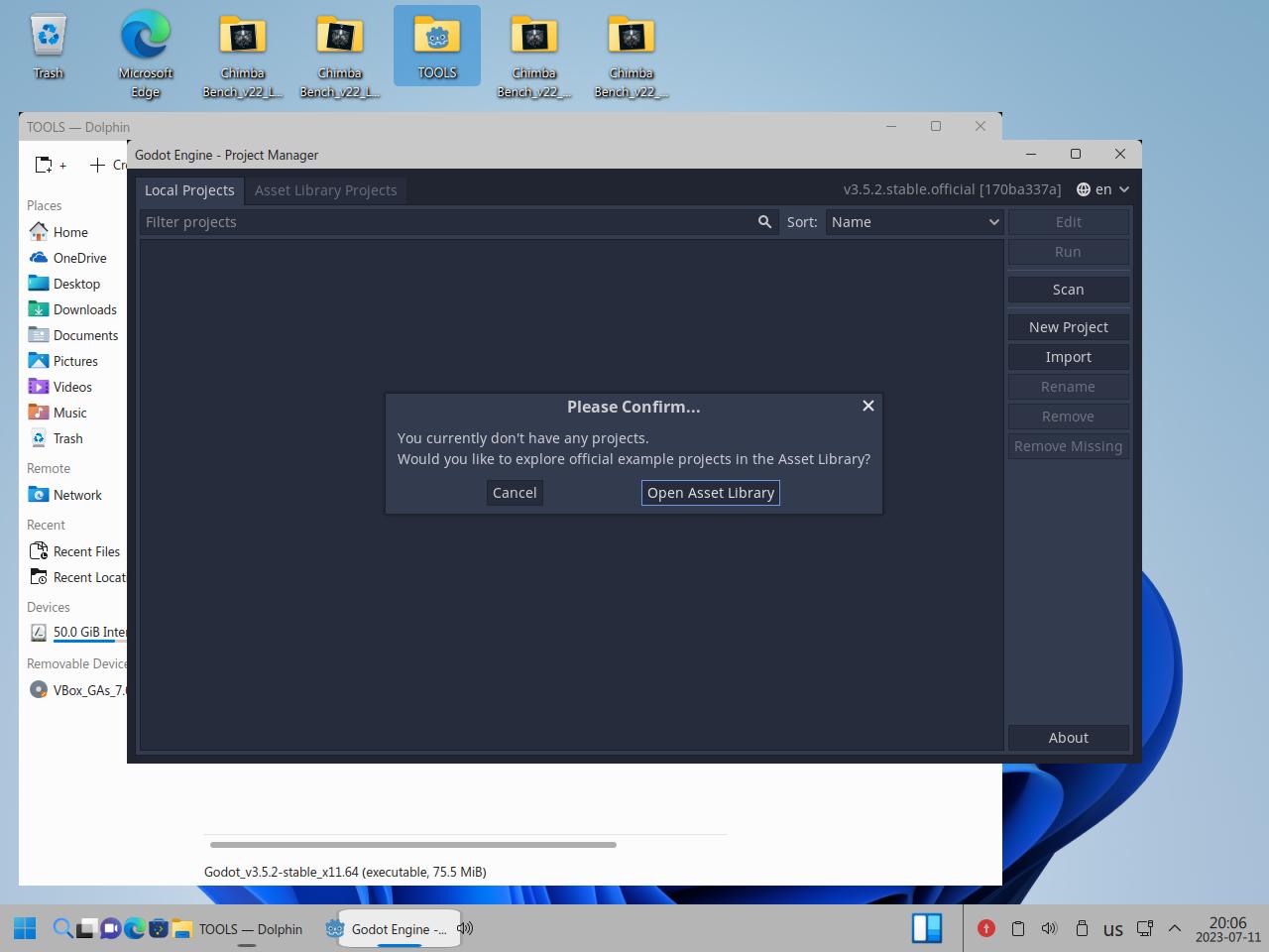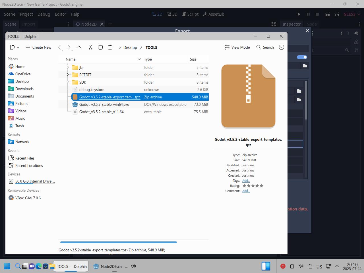 Так я скопировал папку с Godot Engine и вспомогательными инструментами, само собой я взял Linux версию Godot, но некоторые инструменты работают только из под Windows, и сразу же видна разница между исполняемыми файлами Linux и "exe" для Windows, но об этом я уже говорил в предыдущих частях обзора: