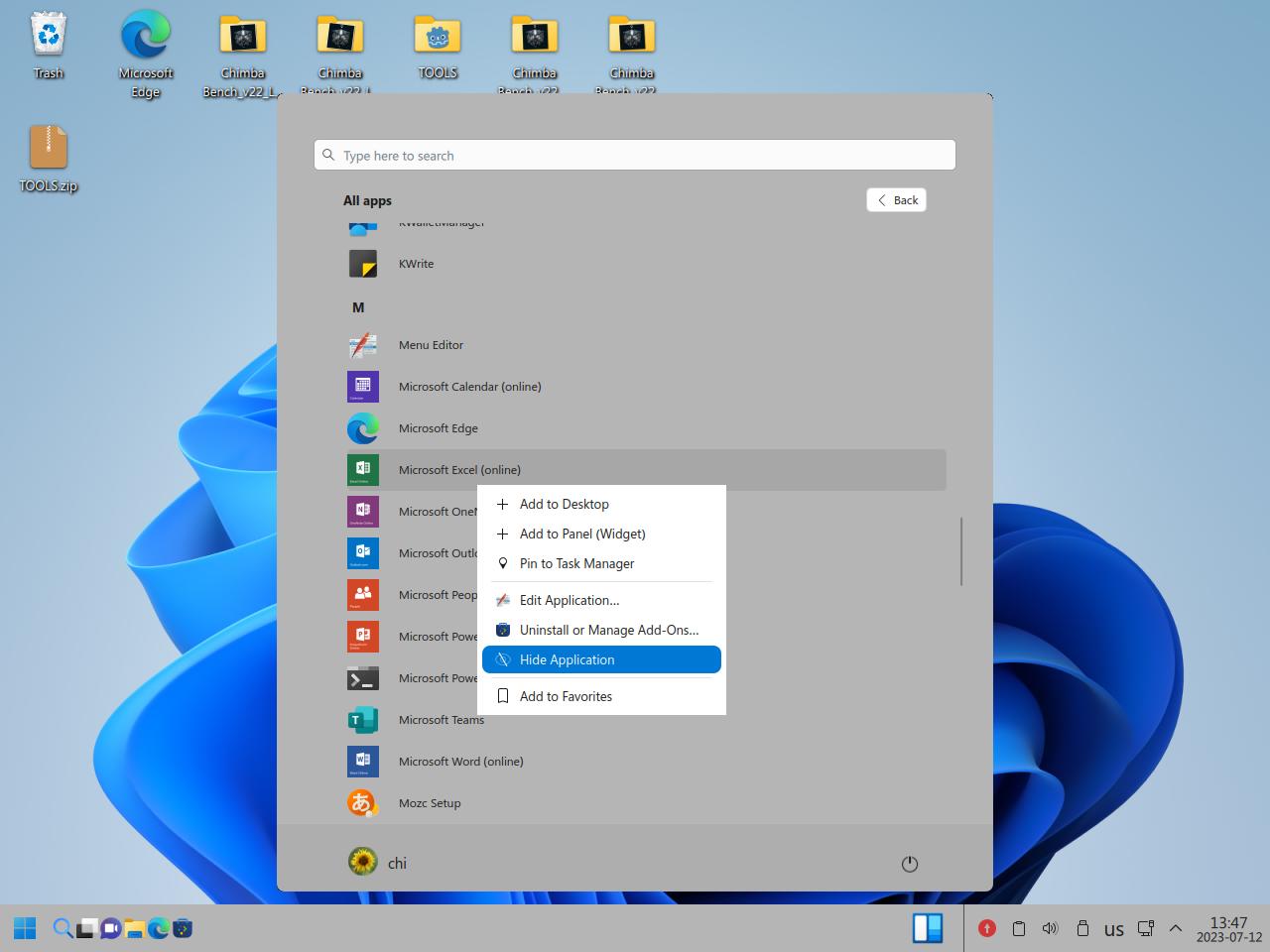- Чтобы скрыть элемент в меню пуск нужно перезагружать систему, а ещё непонятно где искать скрытые приложения, неужели сломавшийся Wine так повлиял на меню пуск?
