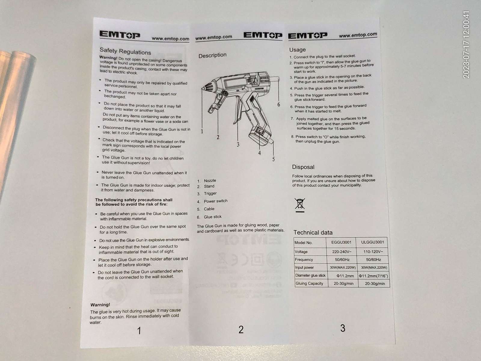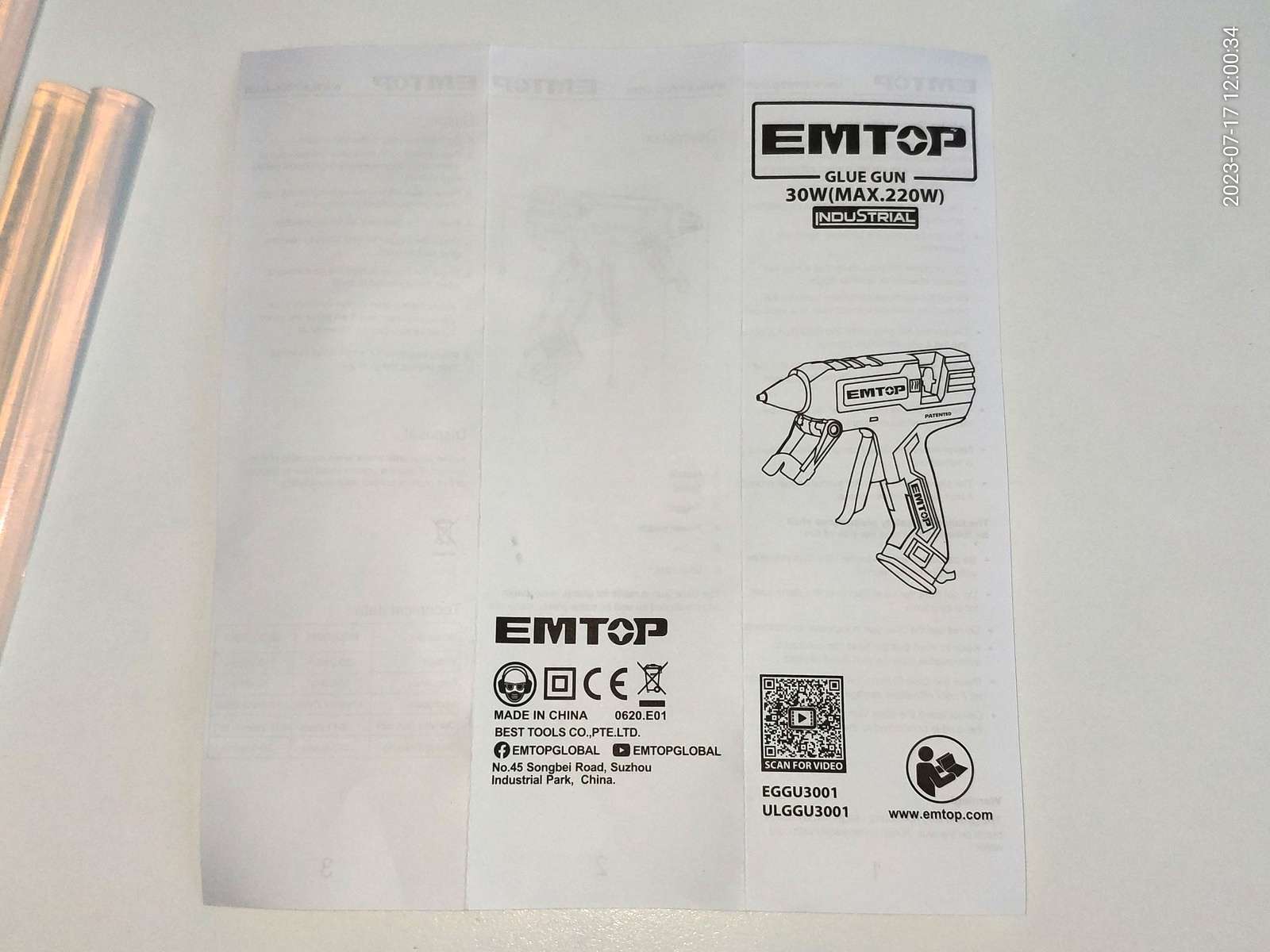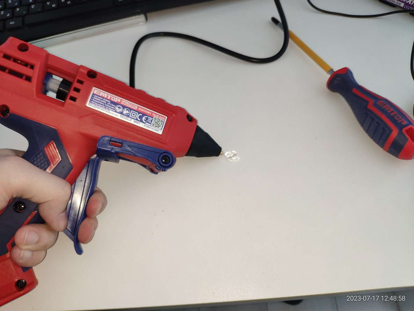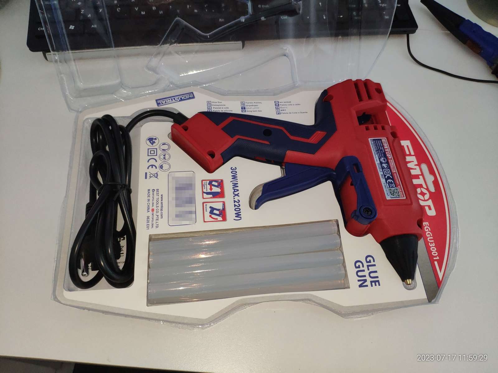 А купил клеевой пистолет EMTOP EGGU3001: