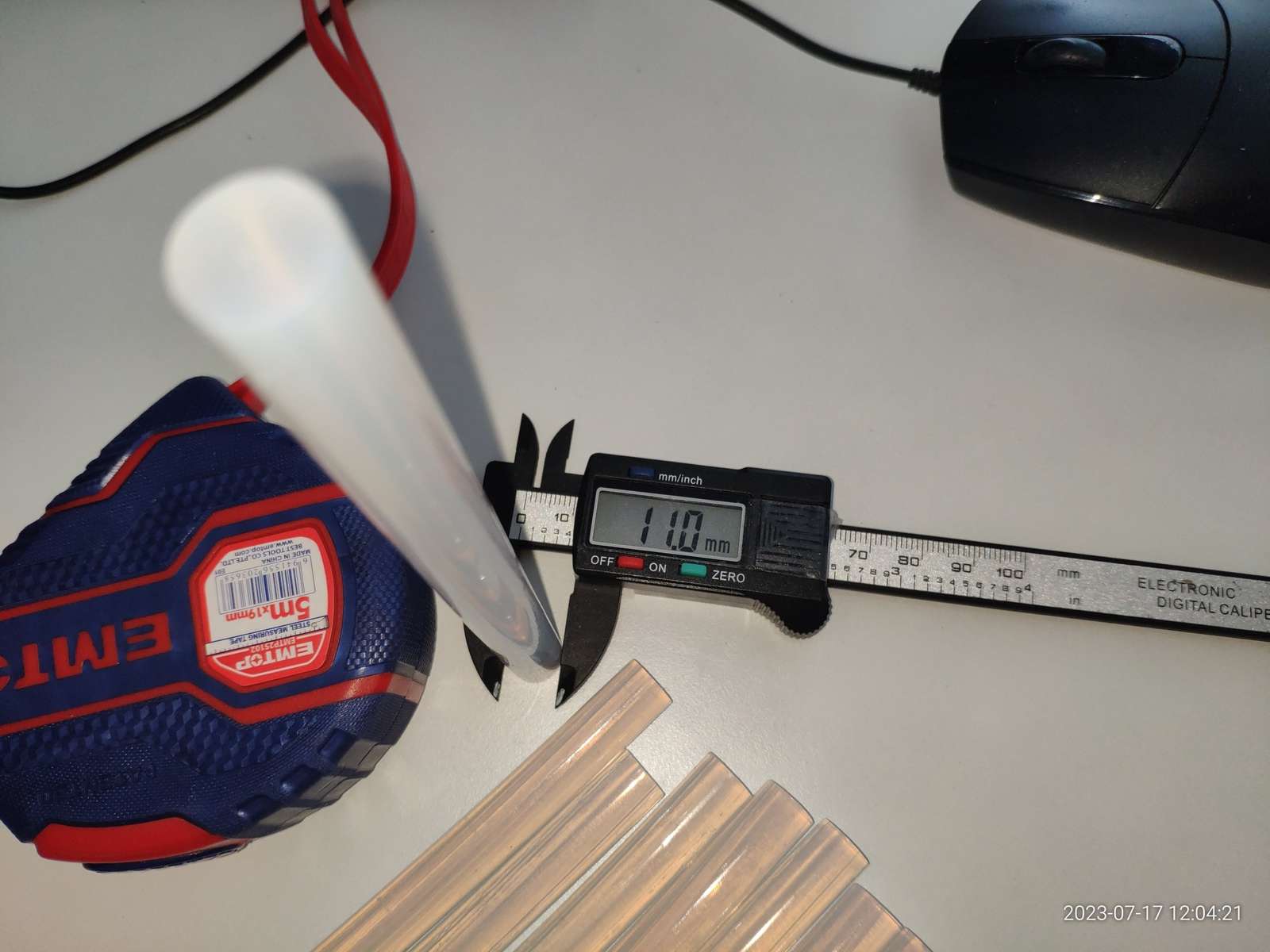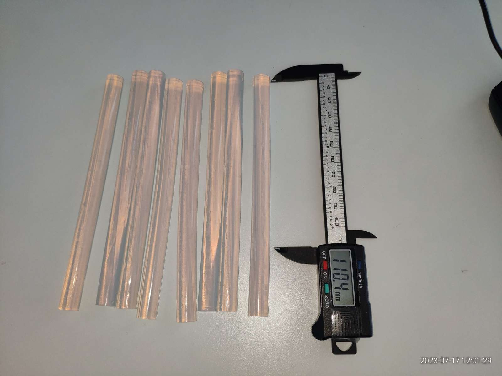 Ещё в комплекте были клеевые стержни формата 150x11мм, они довольно мягкие и немного липкие, обычно я привык использовать более жёсткие стержни, но и эти тоже будут полезны, вес одного стержня 14гр, количество стержней в наборе 8 штук: