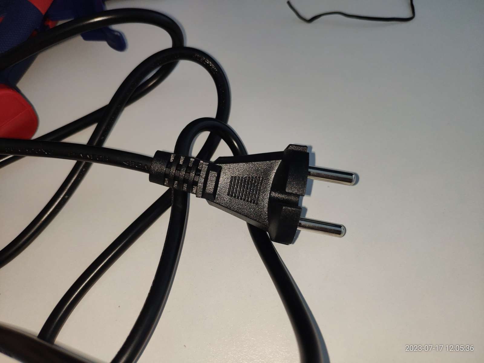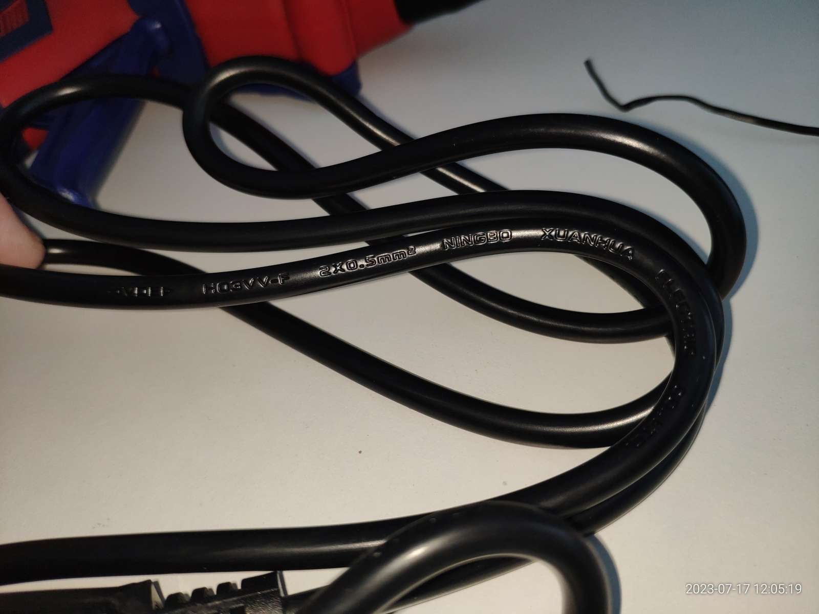 Кабель питания в толстой и качественной изоляции, сечение 0.5 кв. мм., модель H03VV-F, производитель Ningbo Xuanhua Electric co.,ltd., длина кабеля около 170см: