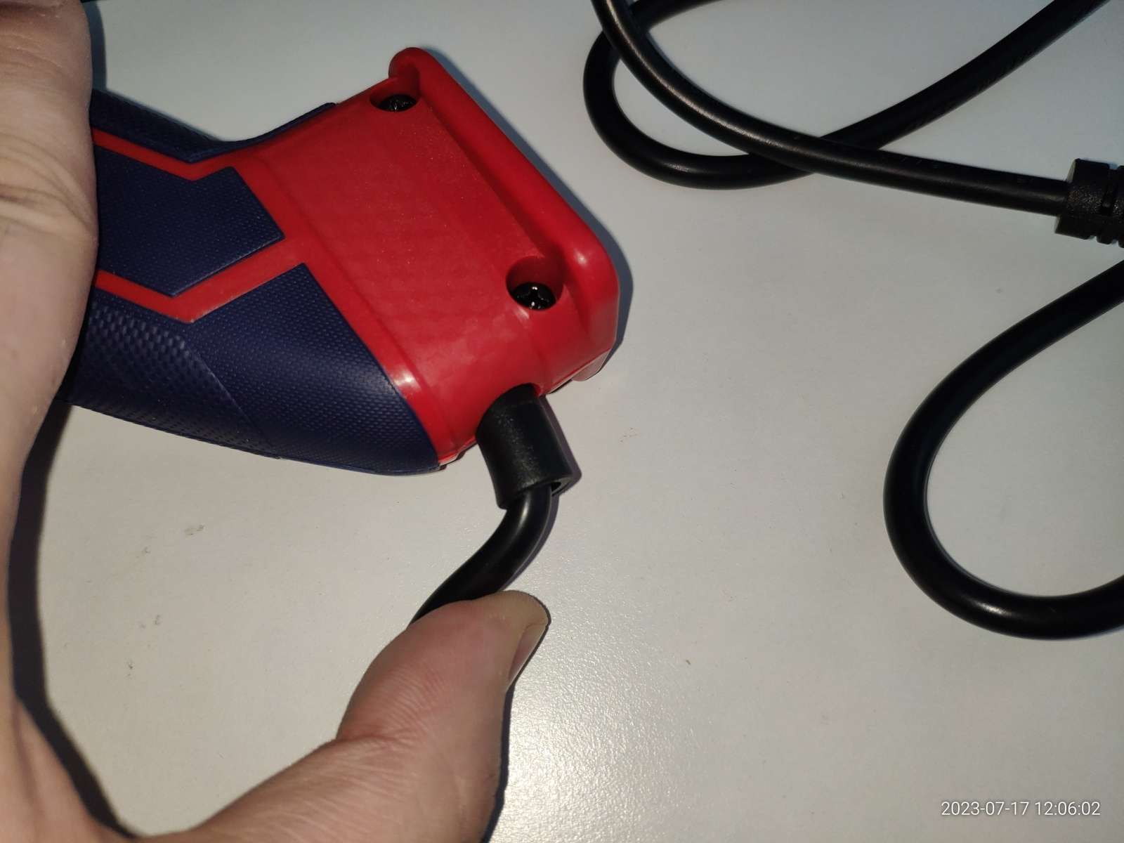 Резина нагрелась сильно, долго держать в руках невозможно, а вот корпус в зоне нагревательного элемента вполне можно держать рукой, но если долго работать думаю это место со временем станет слишком горячим для такого: