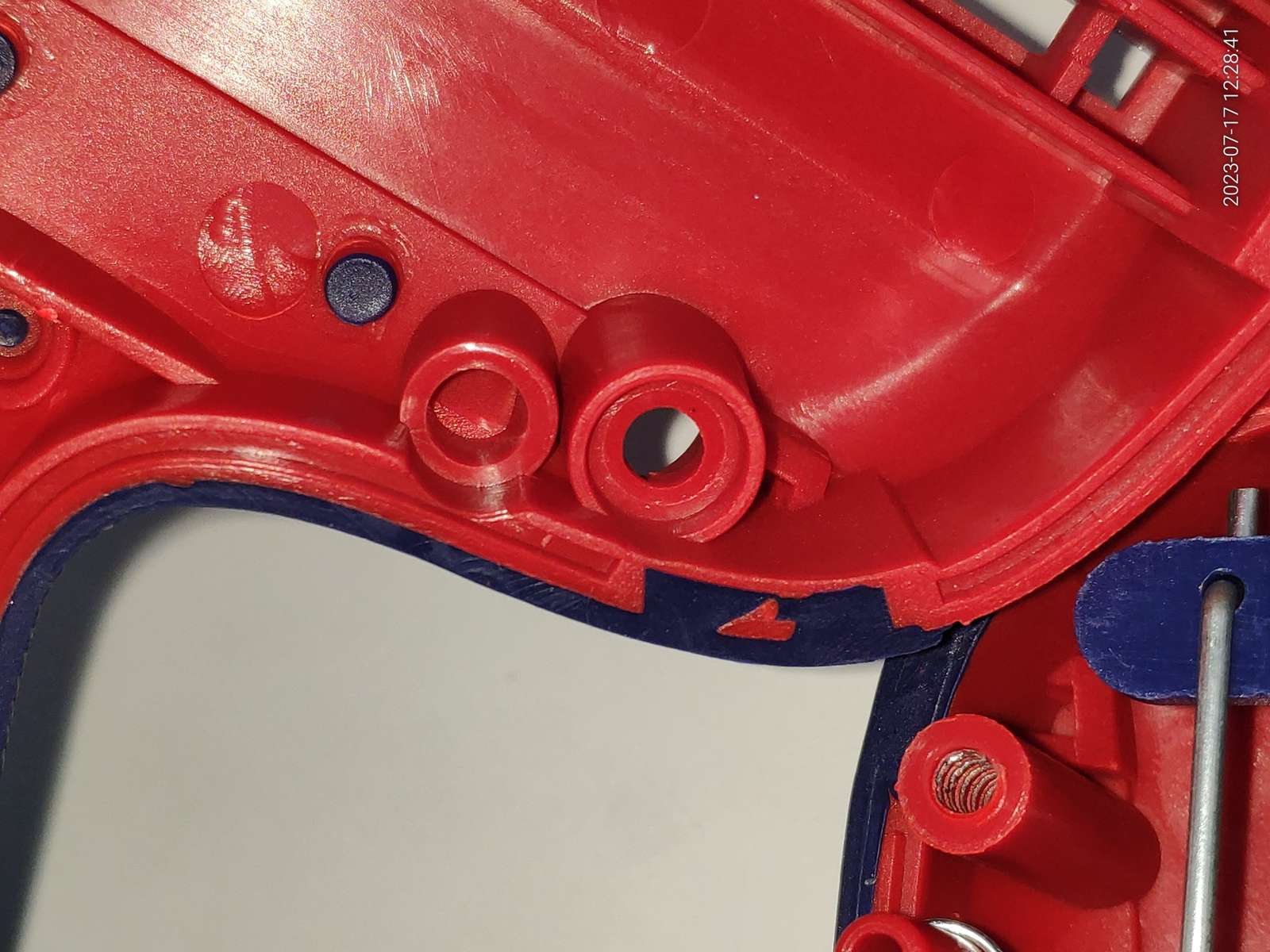 Корпус состоит в основном из пластика красного цвета, есть небольшой облой на стыках, ничего критичного ибо основные места хвата качественно обрезинены: