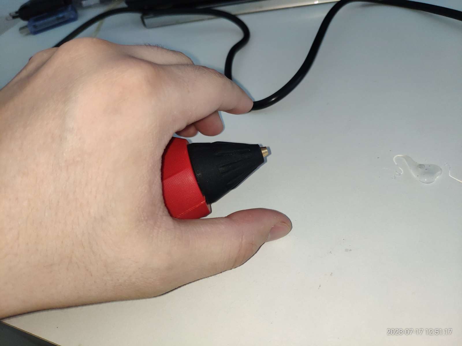 Спустя две минуты после включения я смог продавить клей в камеру нагрева: