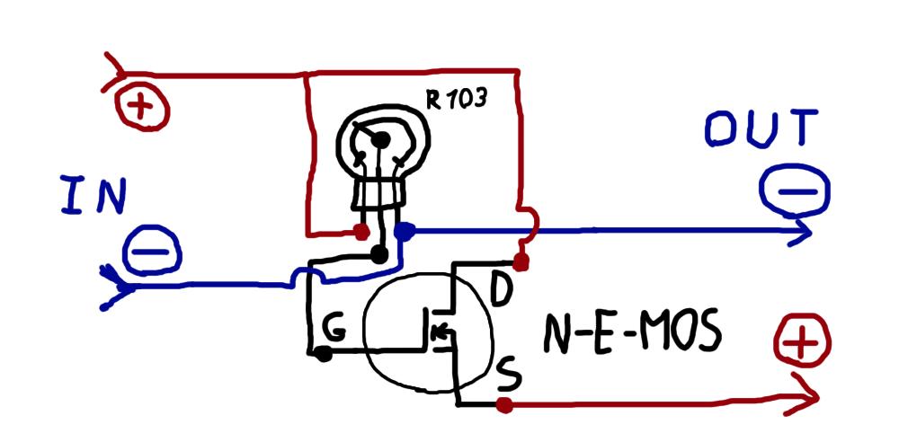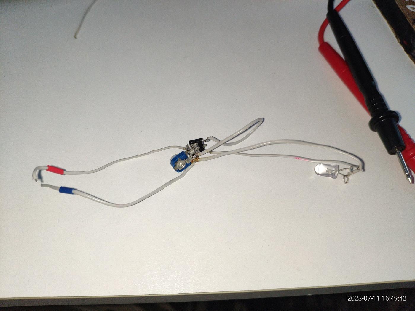 Дальше уже спаял аккумуляторным паяльником простейший регулятор напряжения, для этого мне понадобился N-канальный мосфет, переменный резистор и несколько кусочков провода.