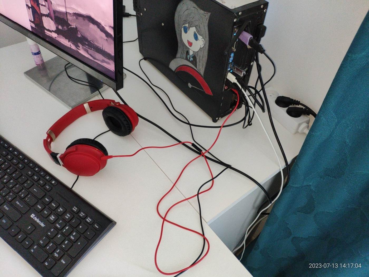 Тем не менее теперь у меня появился нормальный кабель для подключения наушников, и он больше не ограничивает меня в расположении системного блока на столе, прекрасно: