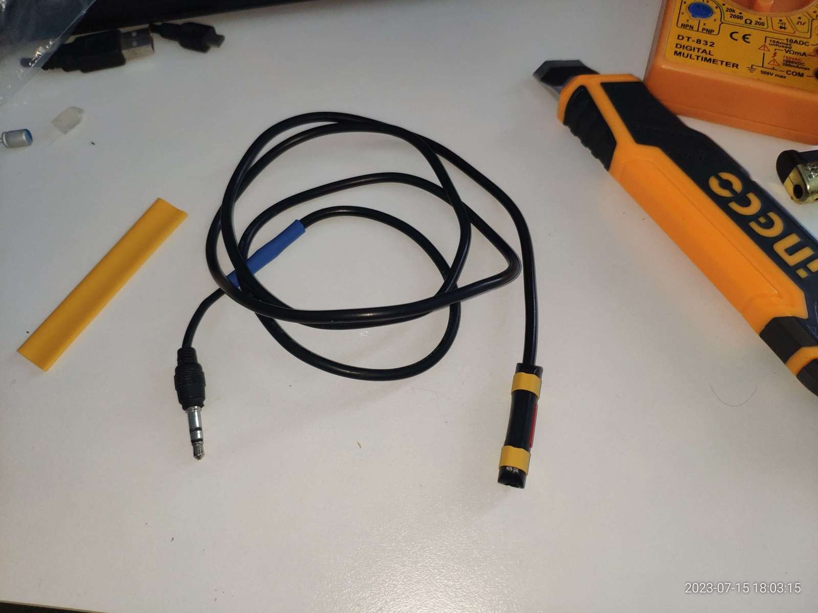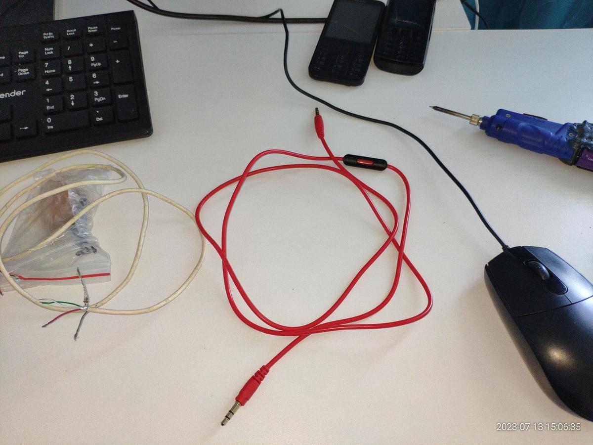 Думал сделать полноценный кабель с гнездом и штекером, но решил не усложнять себе жизнь и просто нарастить уже имеющийся кабель от наушников: