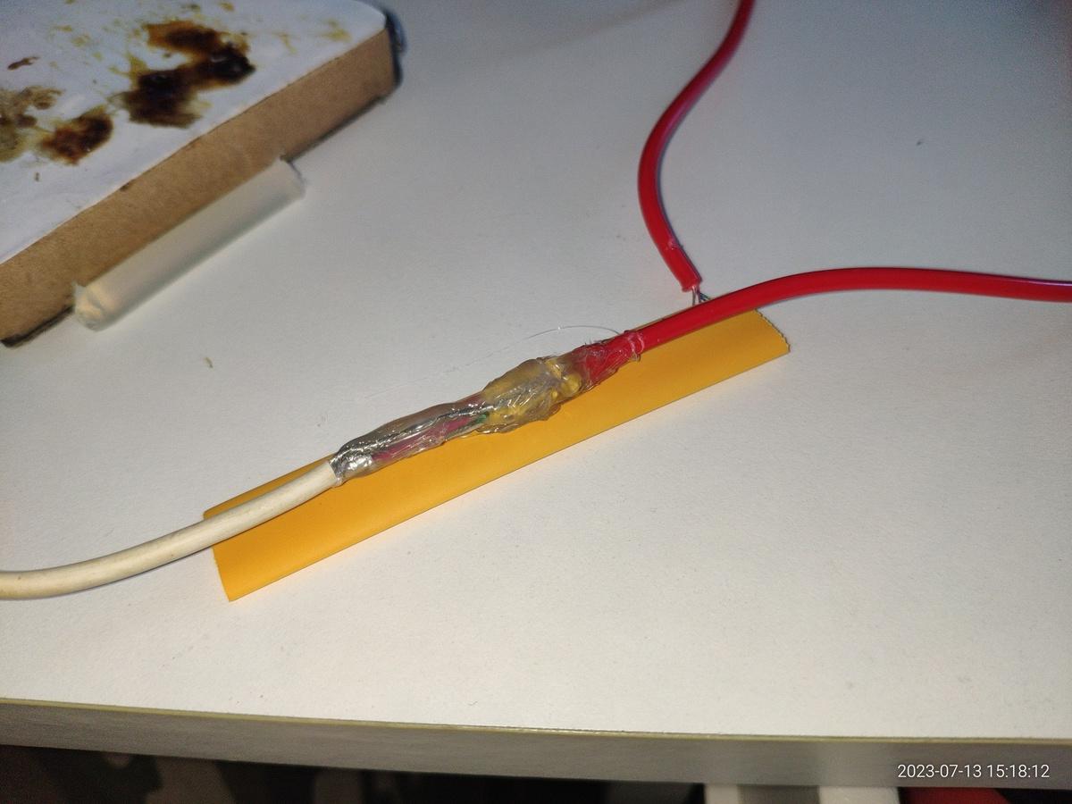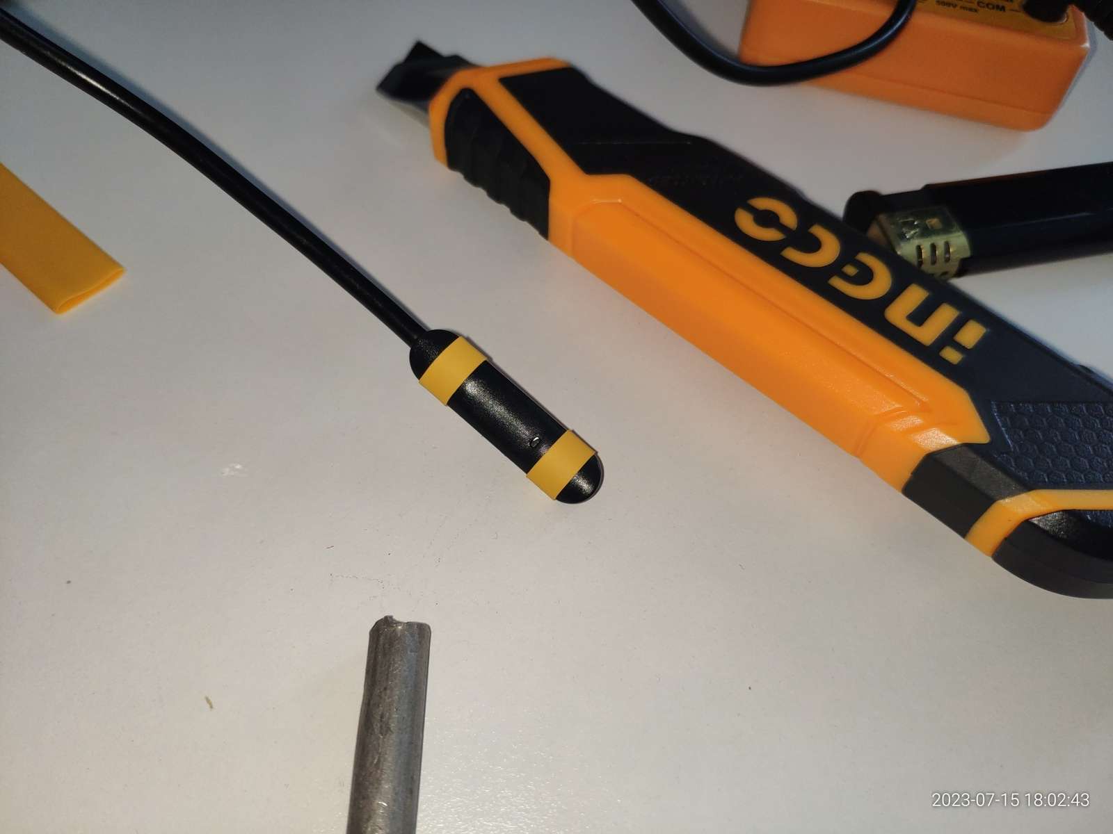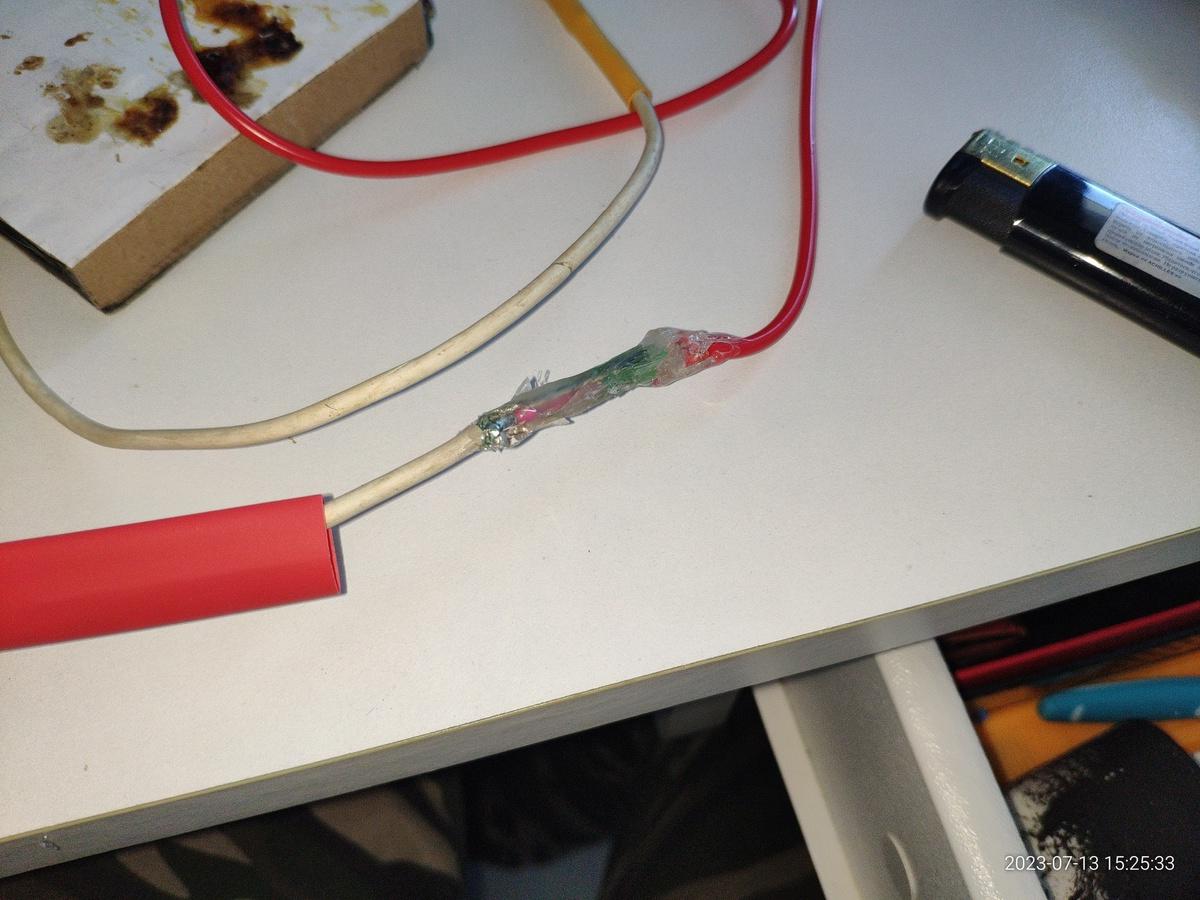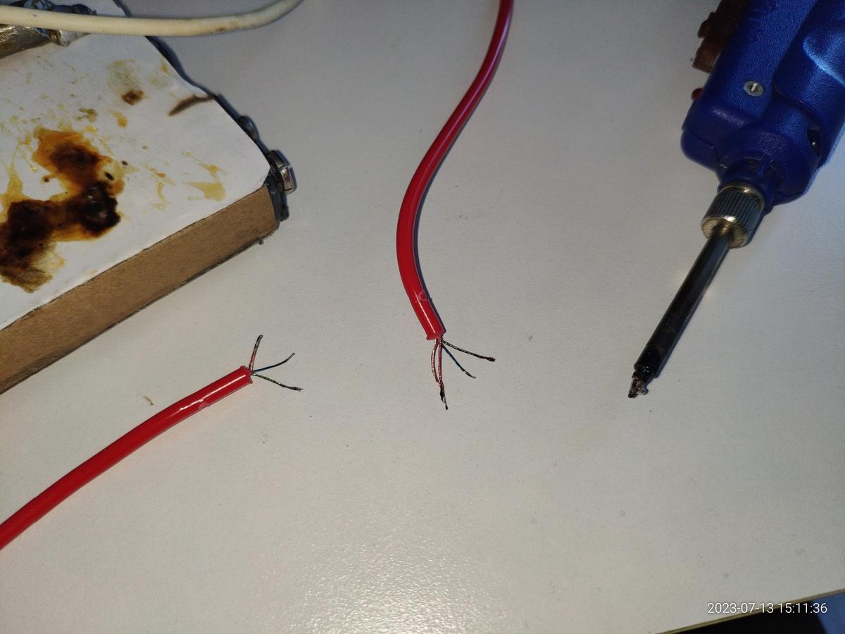 К сожалению мой паяльник не способен припаять провода самому себе, потому без помощи второго паяльника не обойтись: