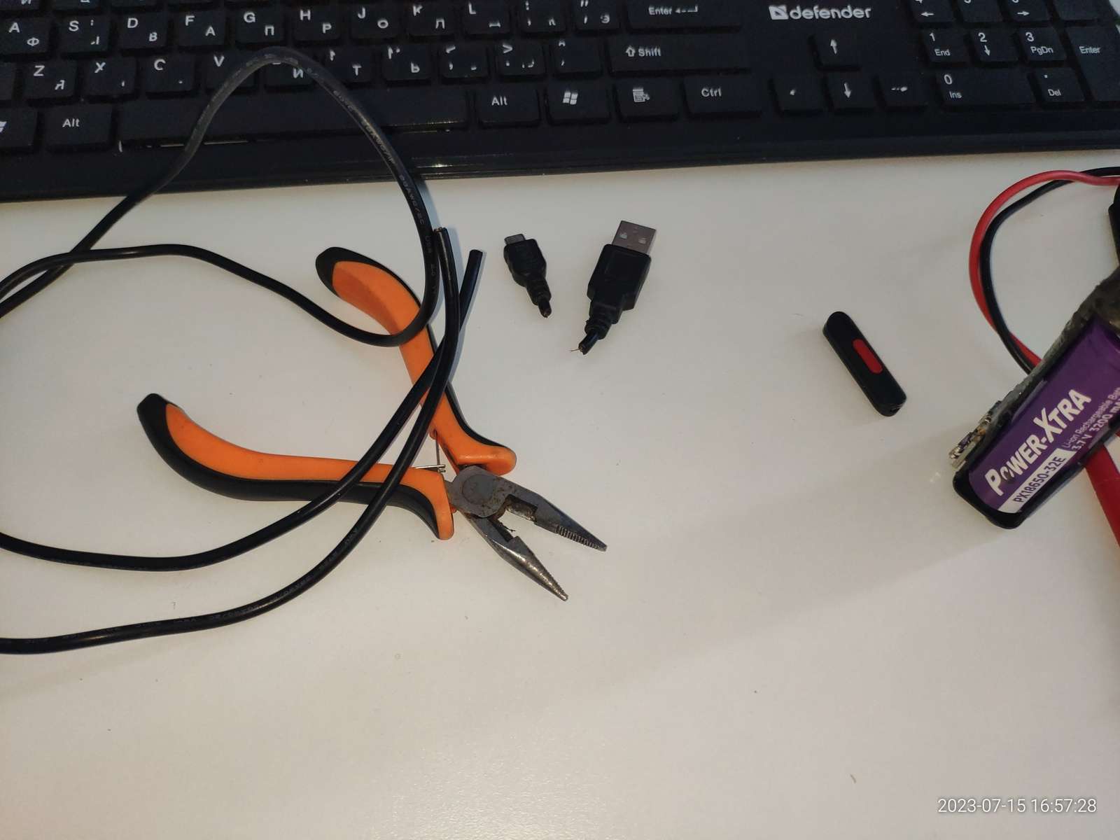 Сначала я думал применить уже отживший своё кабель для зарядки смартфонов, и я его применю, хотя был обнаружен ещё один кабель неисправный, но его как-нибудь в другой раз: