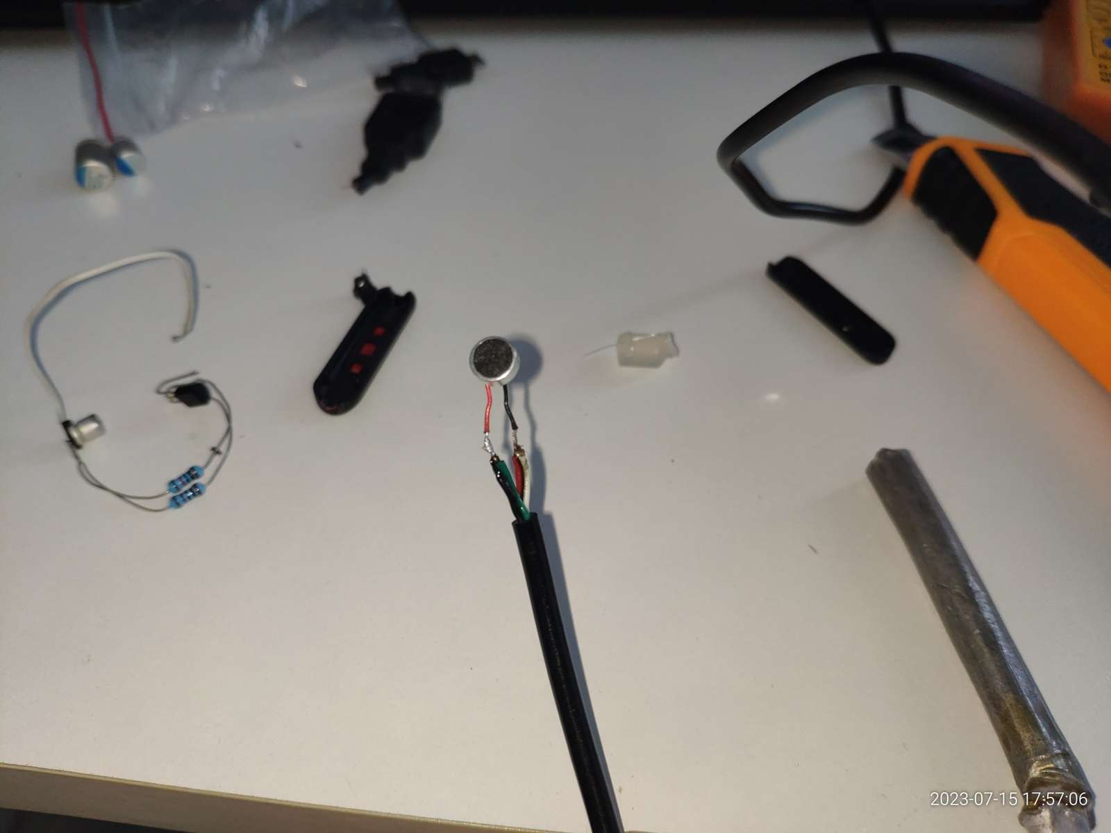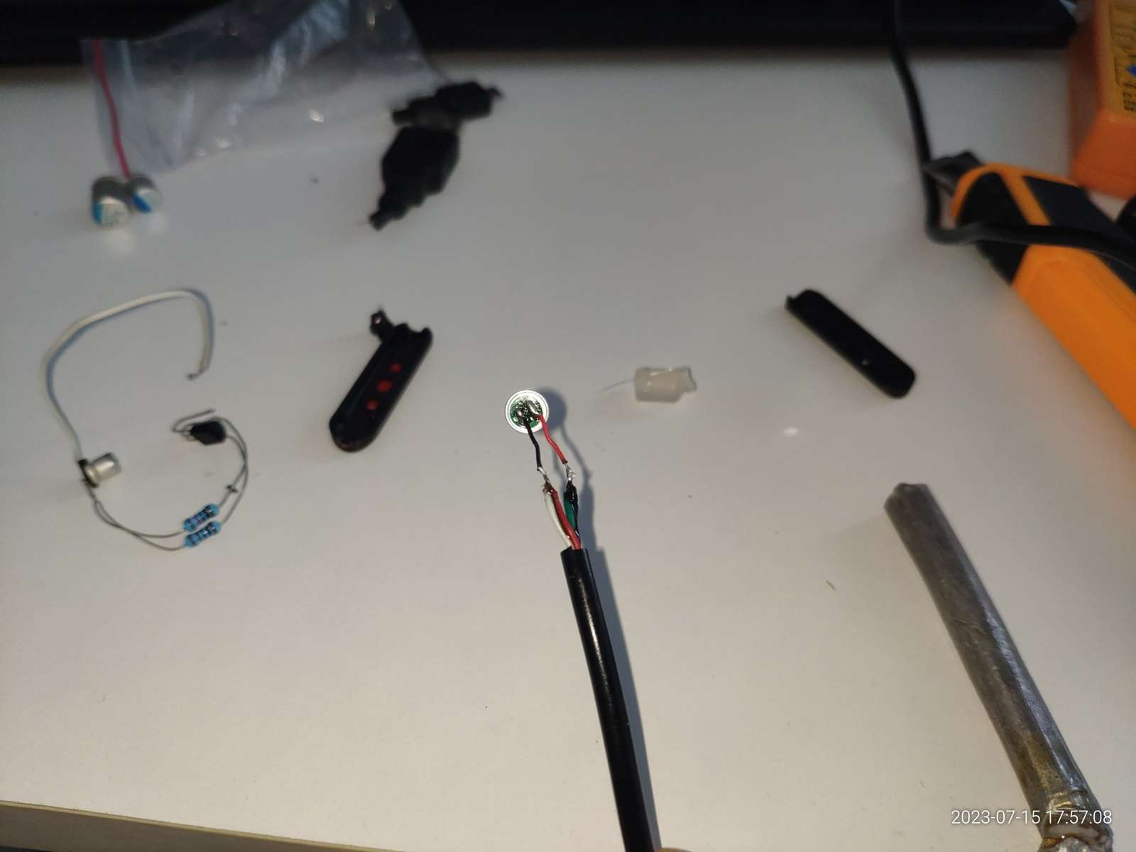 Тем более есть место для встраивания дополнительного куска, как раз вместо микрофона припаяю дополнительный кабель, всё равно я хотел убрать микрофон и сделать его отдельным устройством: