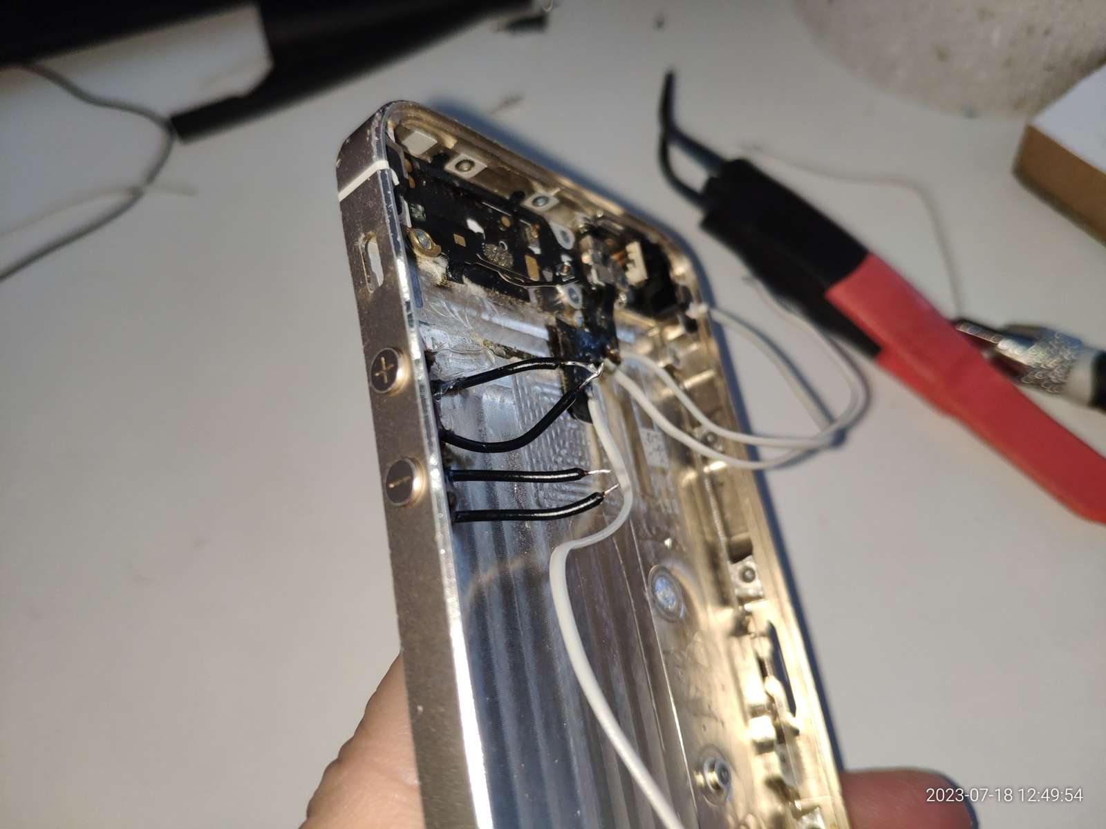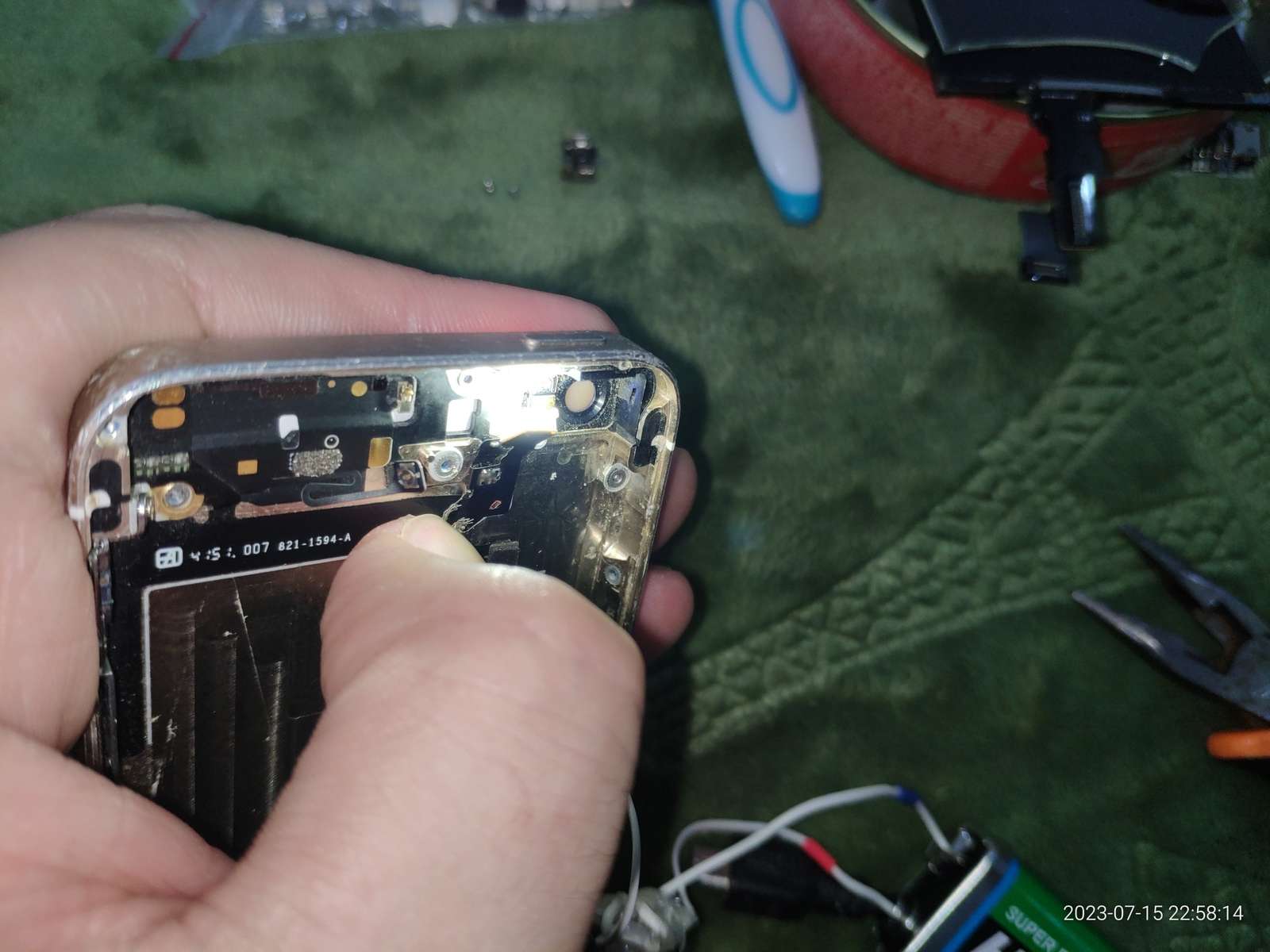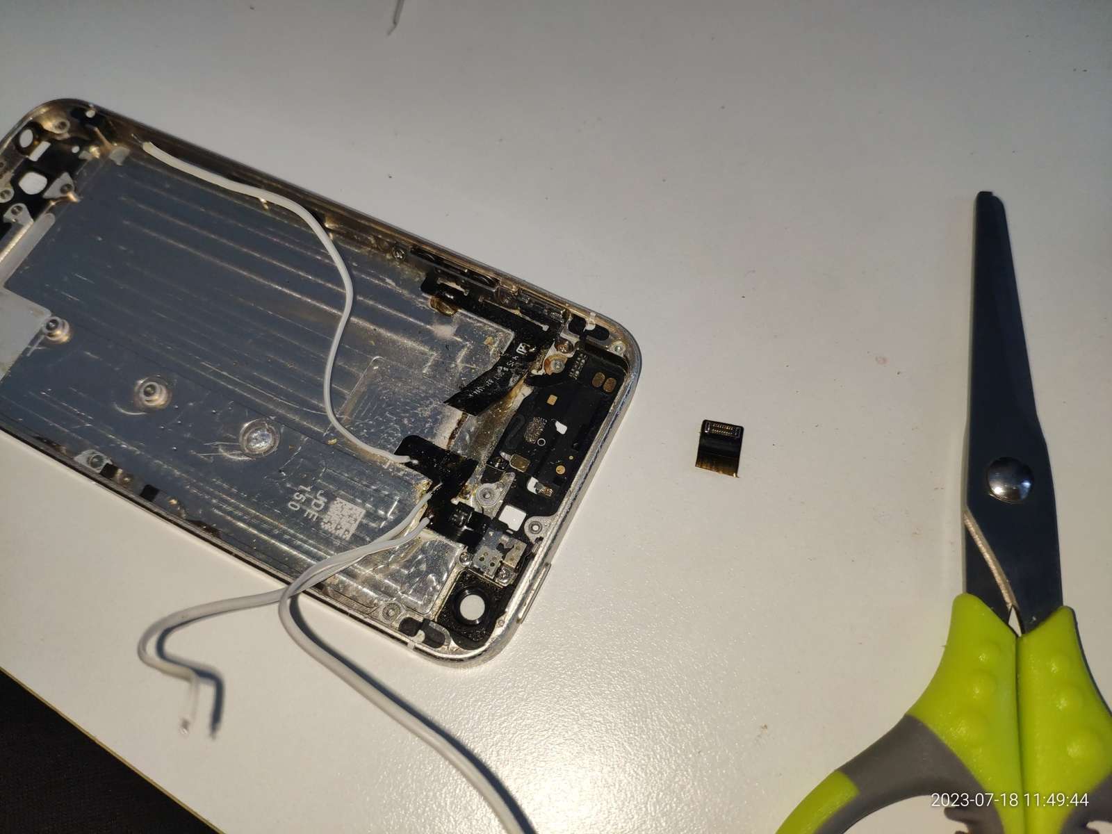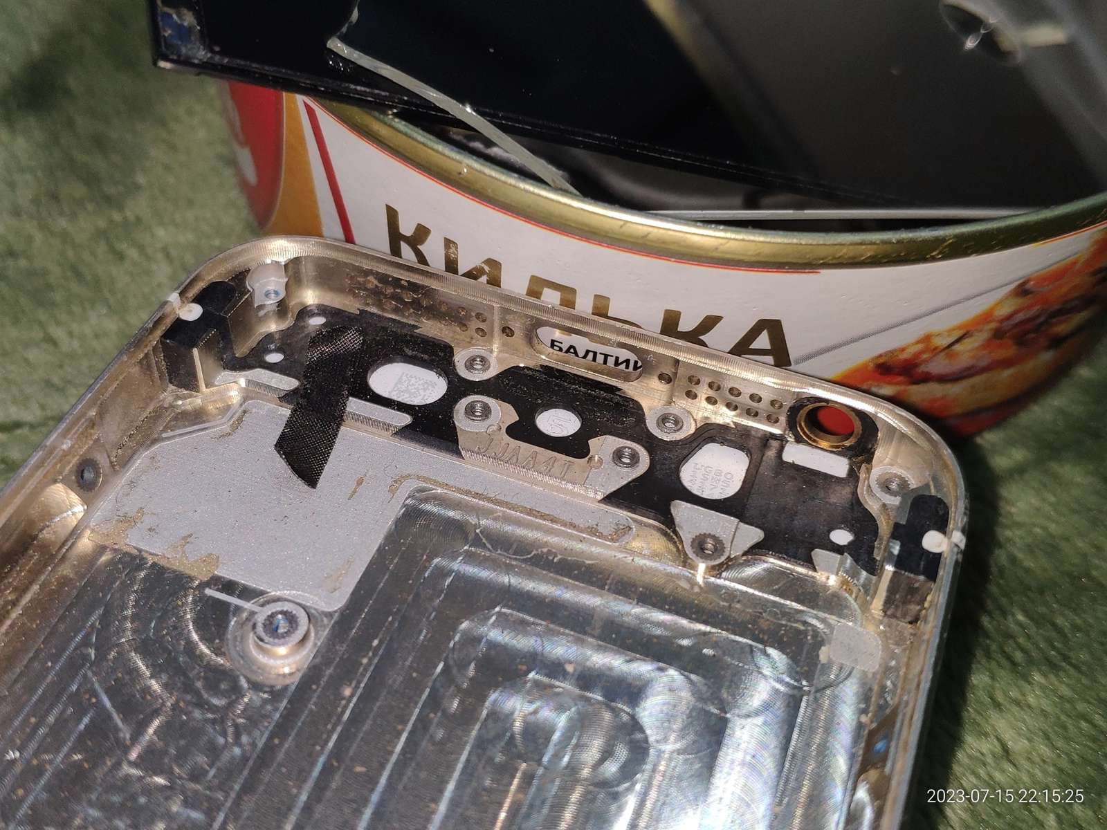 Дальше я решил взяться за iPhone, ведь у него сохранилась камера (уже демонтирована), светодиоды вспышки и корпус со всеми боковыми кнопками: