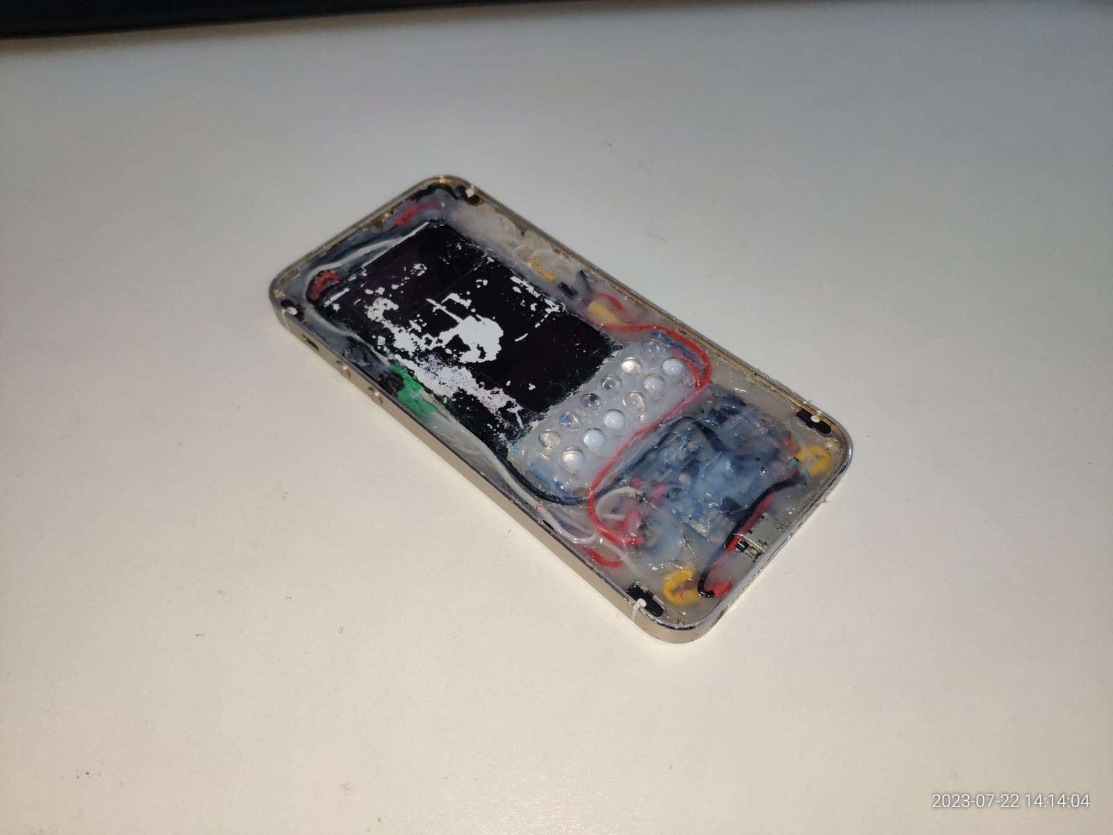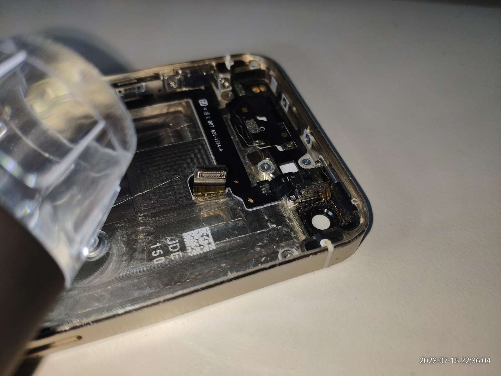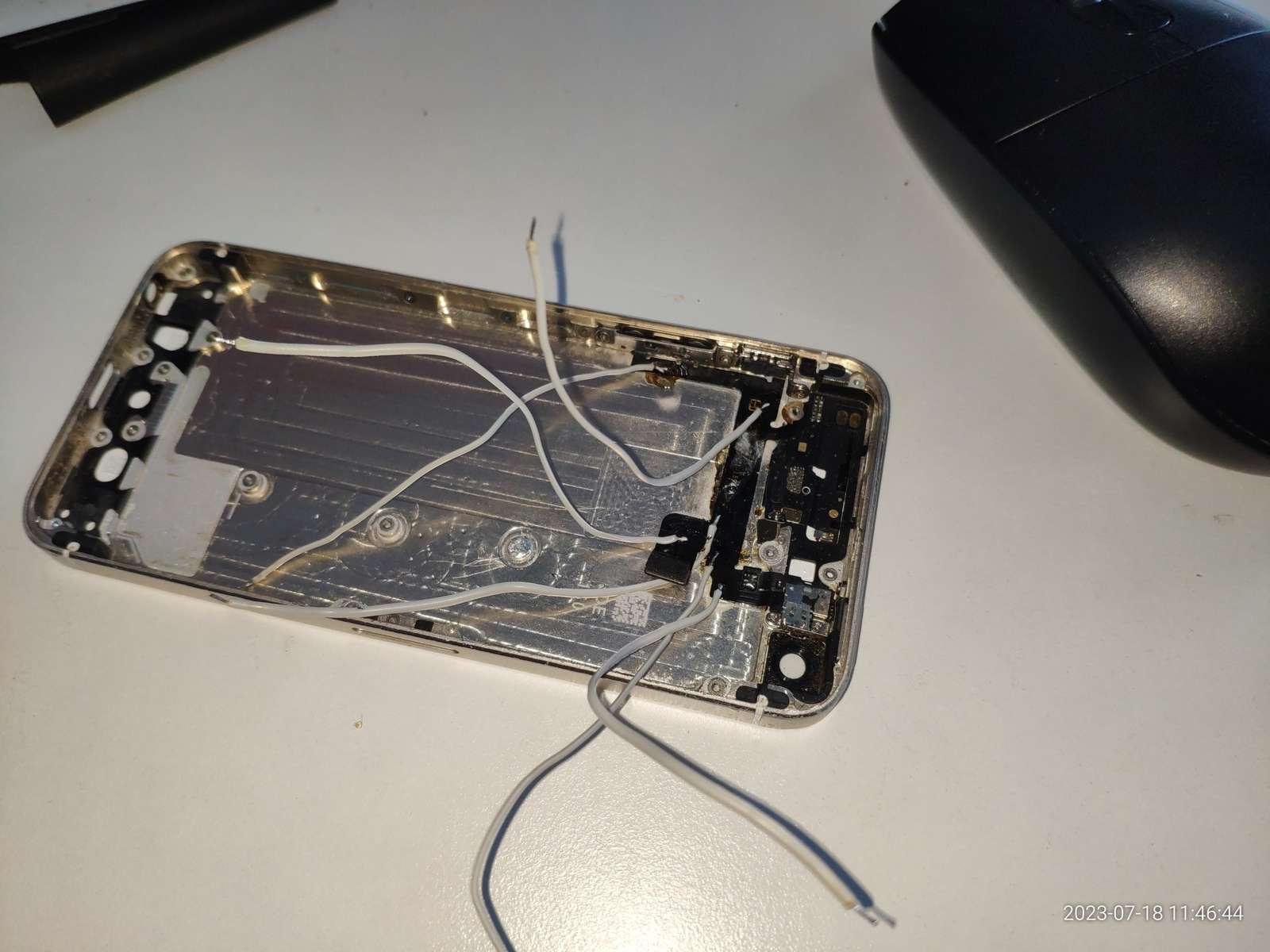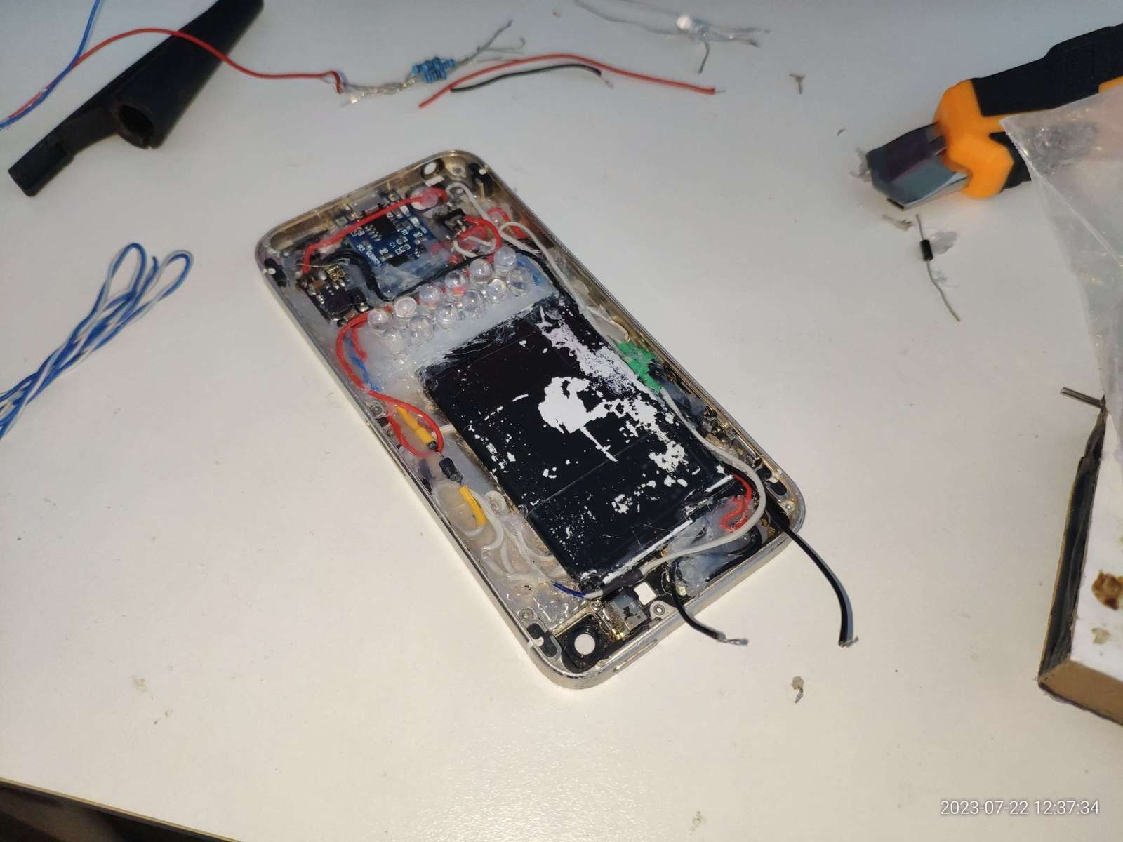 Дальше я решил взяться за iPhone, ведь у него сохранилась камера (уже демонтирована), светодиоды вспышки и корпус со всеми боковыми кнопками: