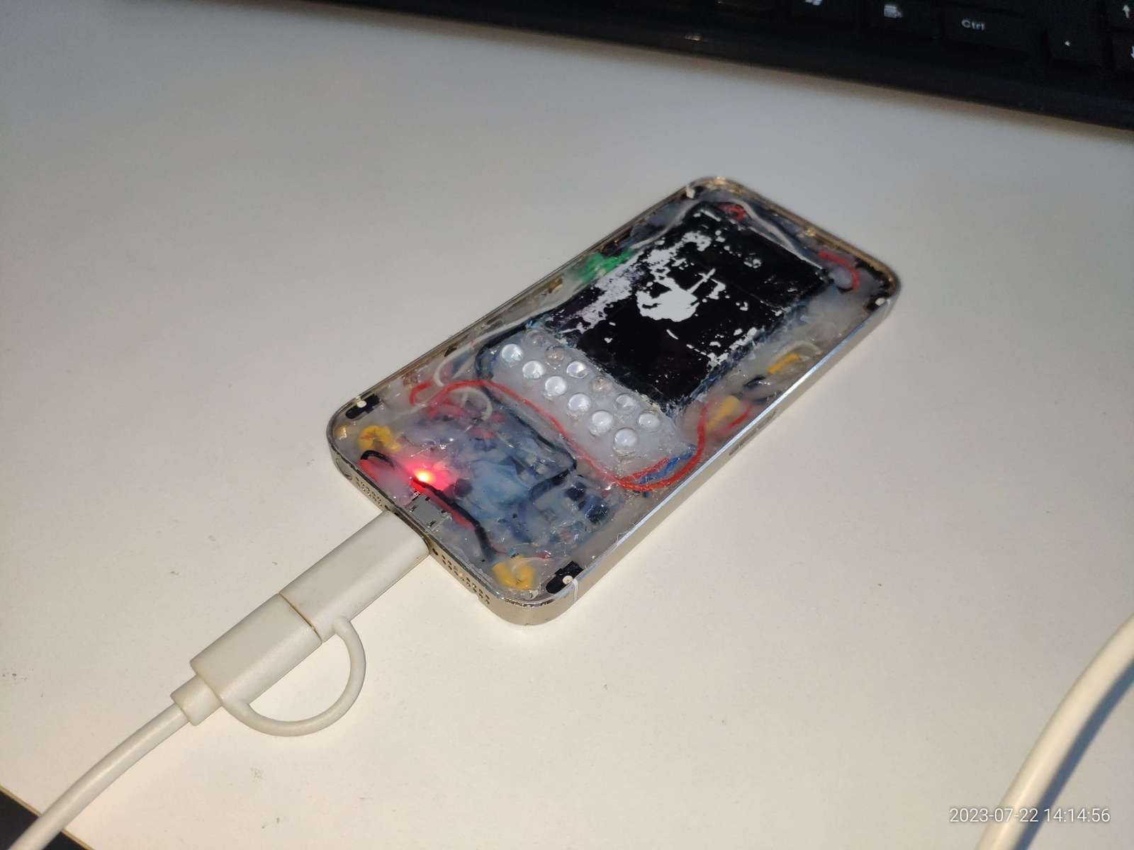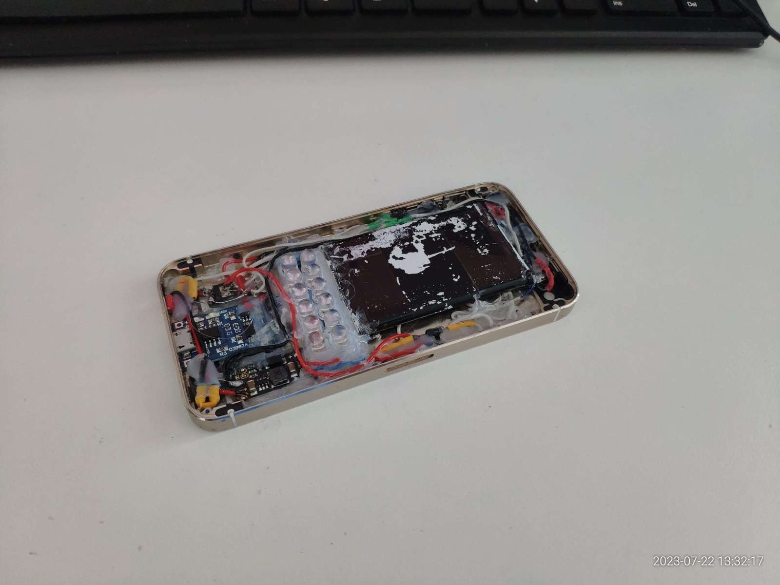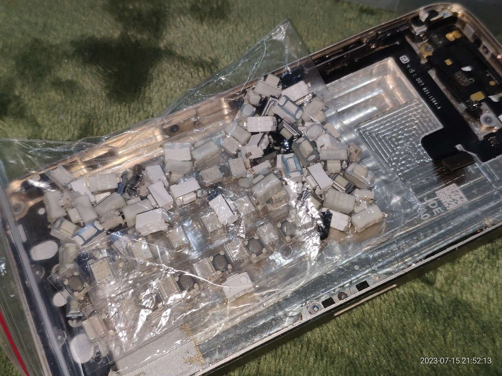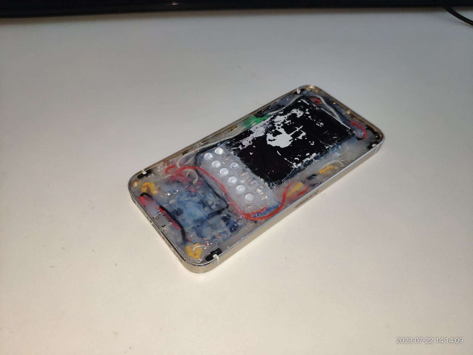 Дальше я решил взяться за iPhone, ведь у него сохранилась камера (уже демонтирована), светодиоды вспышки и корпус со всеми боковыми кнопками: