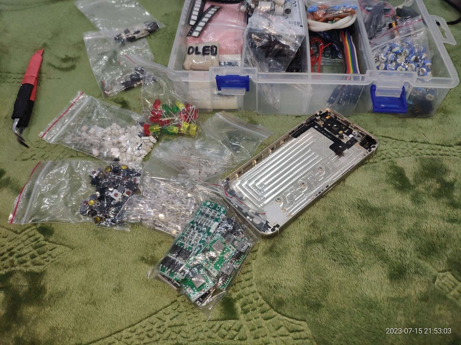 На всякий случай проверил что у меня вообще есть полезного для новой поделки, нашлись кнопки и светодиоды: