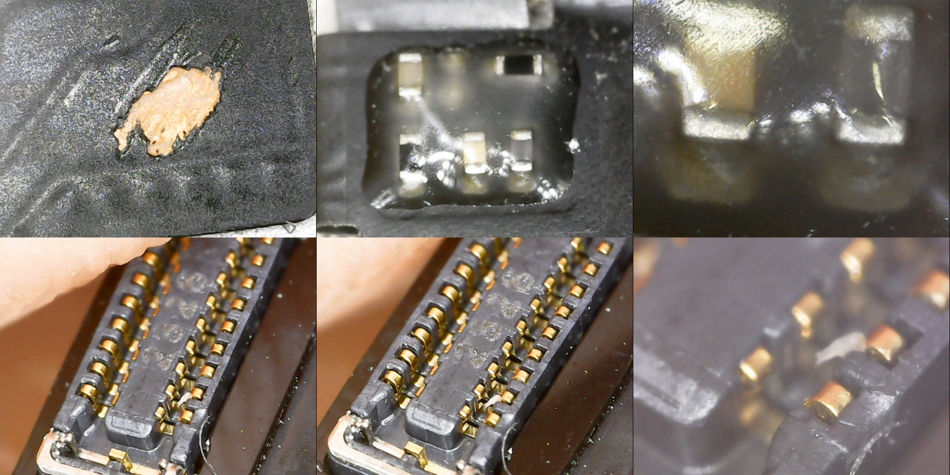 Apple просто невероятные засранцы, они провод "земли" делают размером на весь шлейф, а возвратную дорожку от кнопки сделали микроскопических размеров, и её просто крайне тяжело даже моим паяльником с маленьким жалом залудить без разрушения самой дорожки: