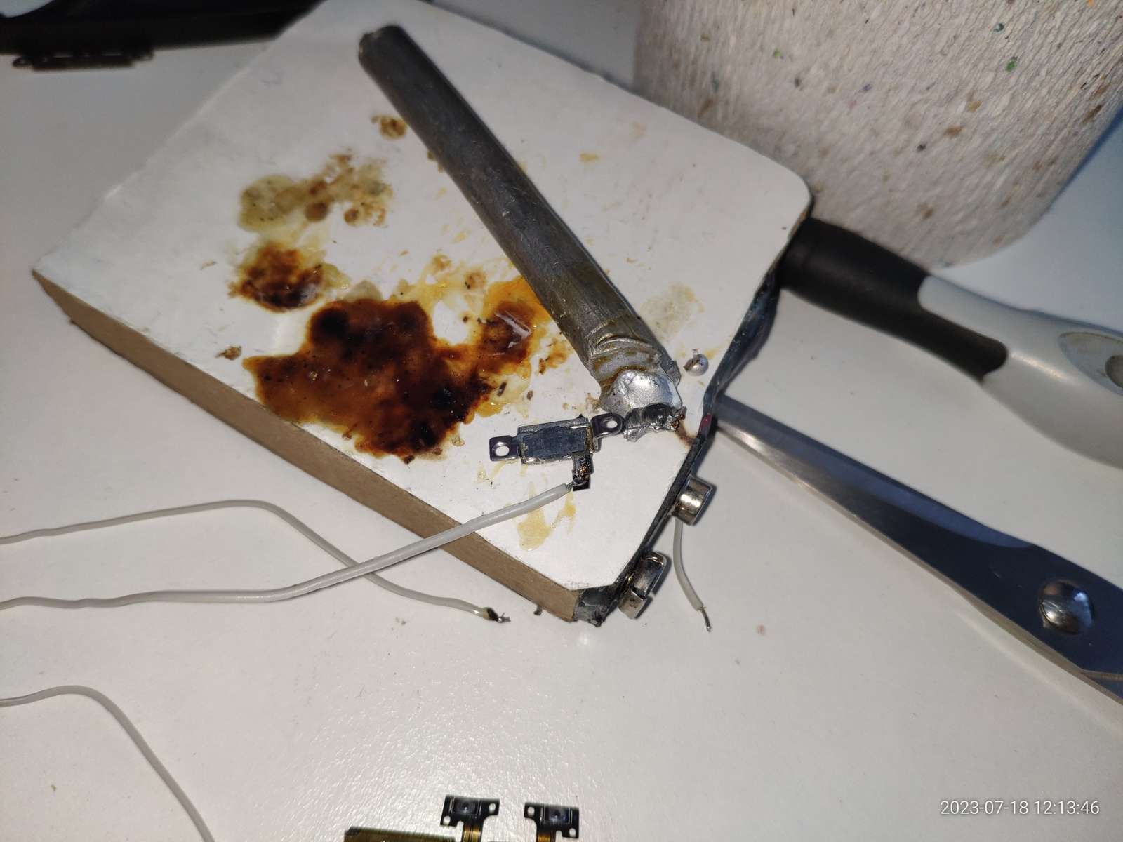 Apple конечно могут делать необоснованно тонкие дорожки у шлейфов, и кому-то они даже навредят таким поступком лишив возможности отремонтировать устройство, но не мне... Ведь я не ремонтирую, я создаю новое из мусора, и я не постесняюсь припаять провода прямо к кнопкам вырезав шлейф полностью: