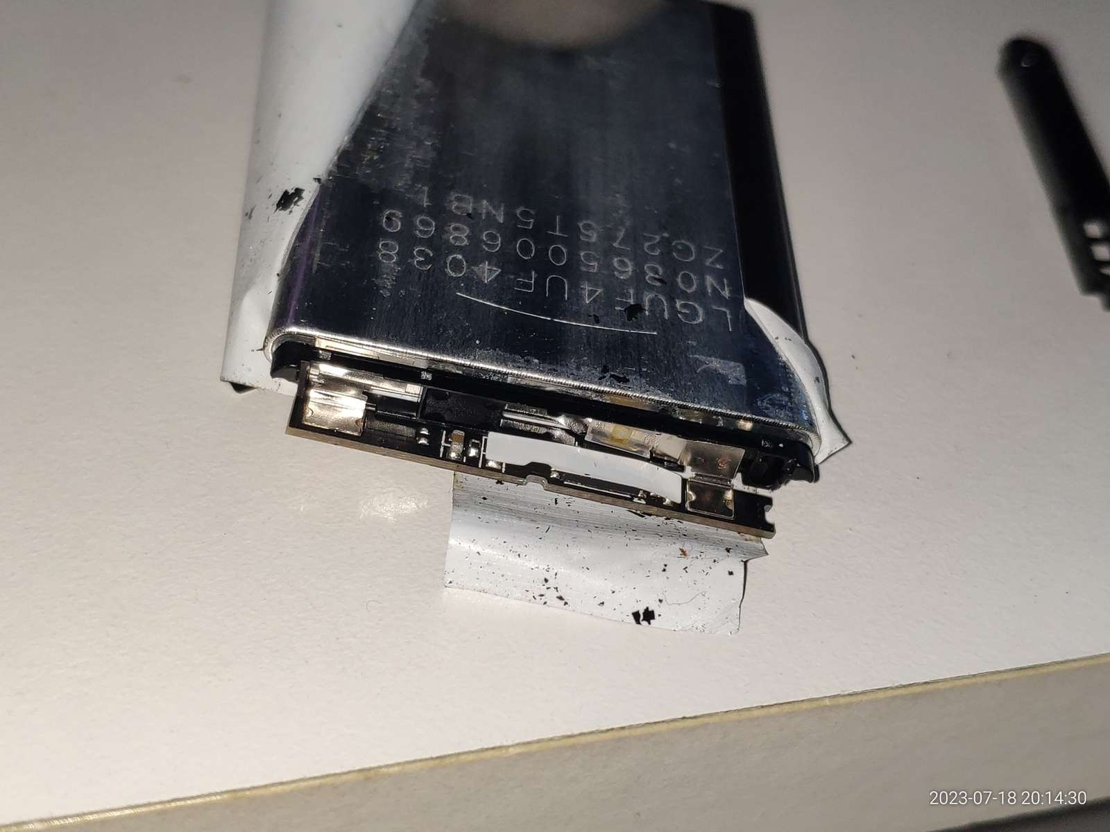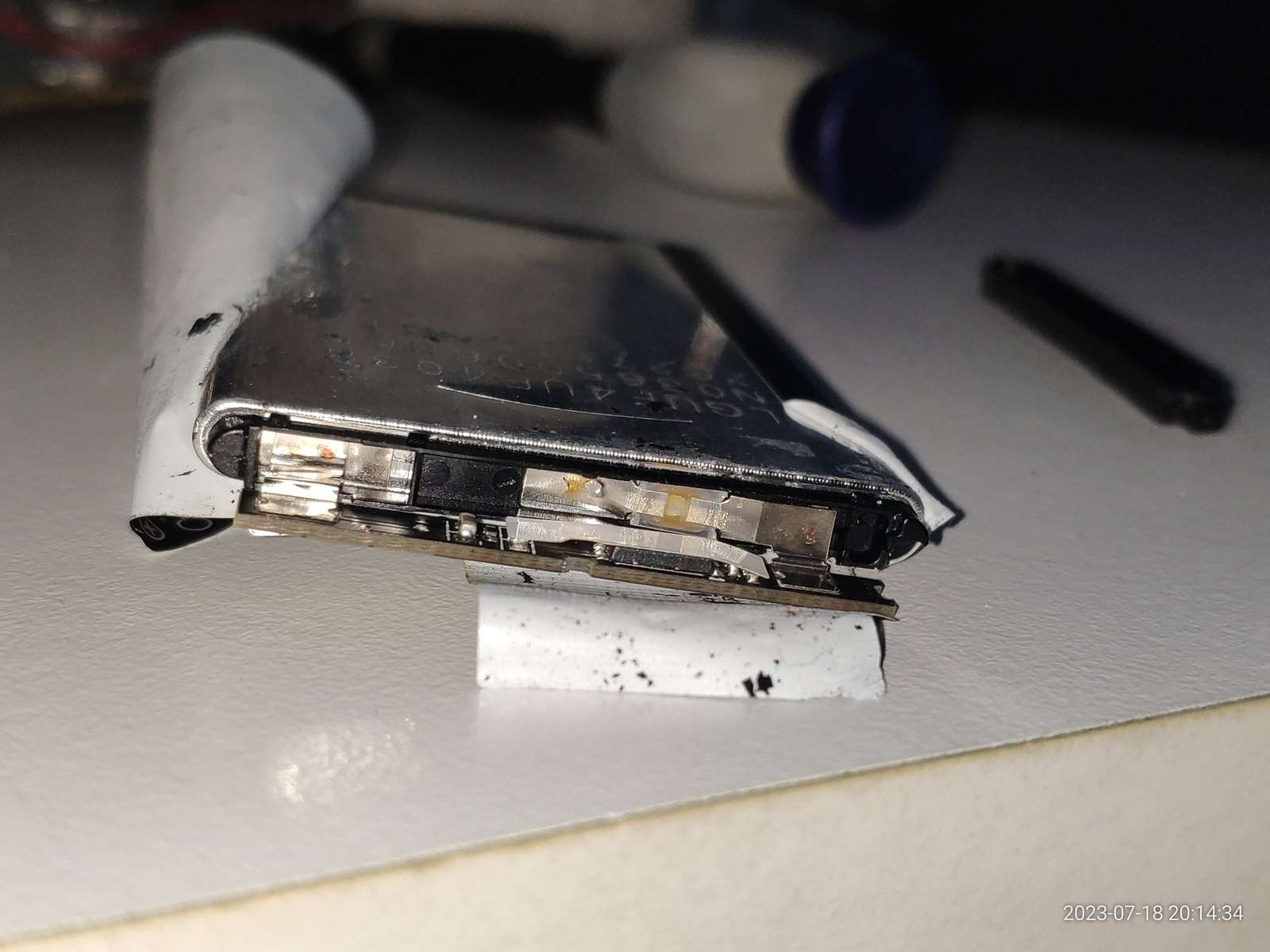 Продолжаю продолжать, пора бы пристроить аккумулятор в корпус, само собой нужно убрать электронную защиту, потому разбираю аккумулятор и вижу забавную ситуацию, этикетка превращается в прах, ну и ладно: