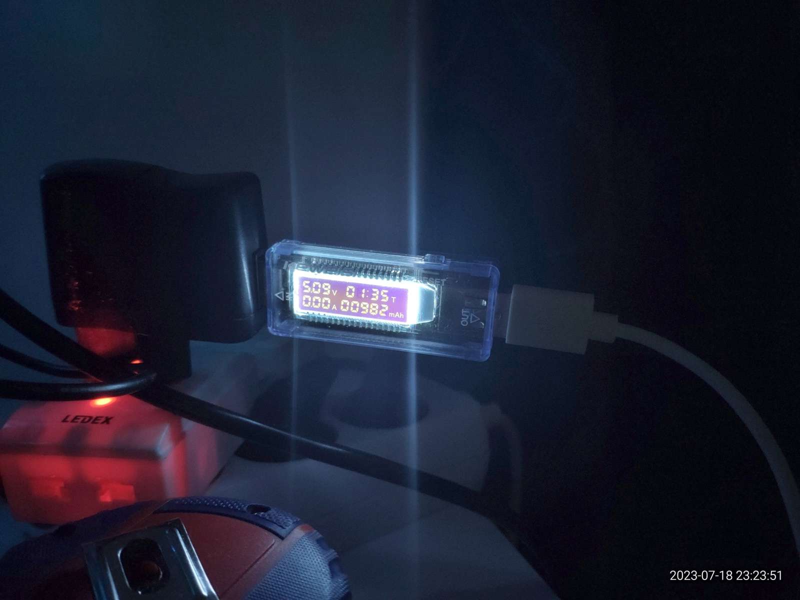 Про яркость фонарика ничего не скажу, иногда хочется поубавить... Но не буду, сойдёт и так для самоделки на коленке, оно работает и это главное, даже индикаторы зарядки прекрасно видны, правда по окончании зарядки синий светодиод окрасился в жёлтый цвет, даже немного оранжевый: