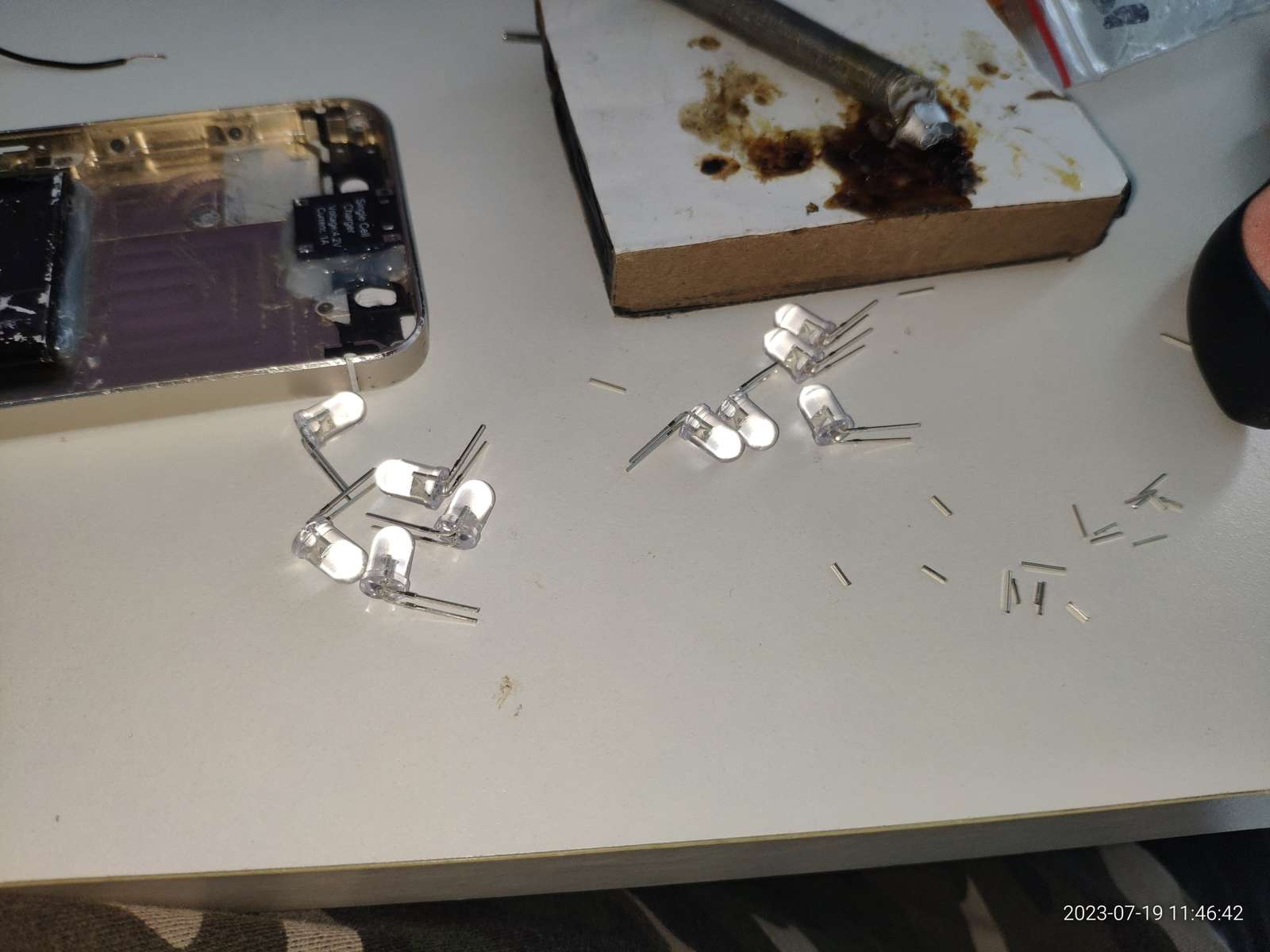 Подготовка занимает действительно много времени, гораздо больше времени чем сам процесс пайки... И сейчас я определился со схемой подключения светодиодов: