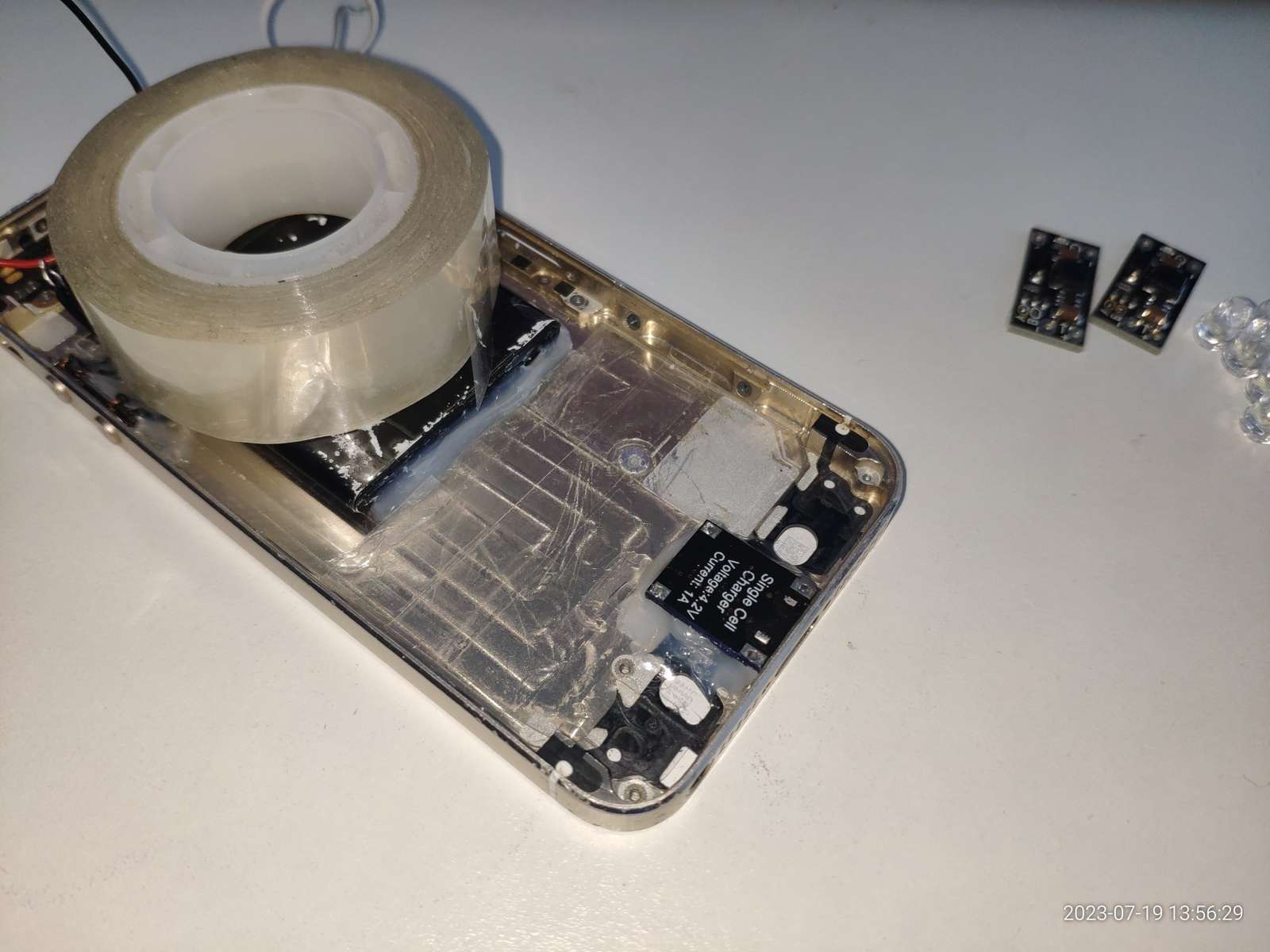Я немного поработал над новым устройством пока заряжался аккумулятор, наклеил парочку слоёв скотча, чтобы изолировать корпус: