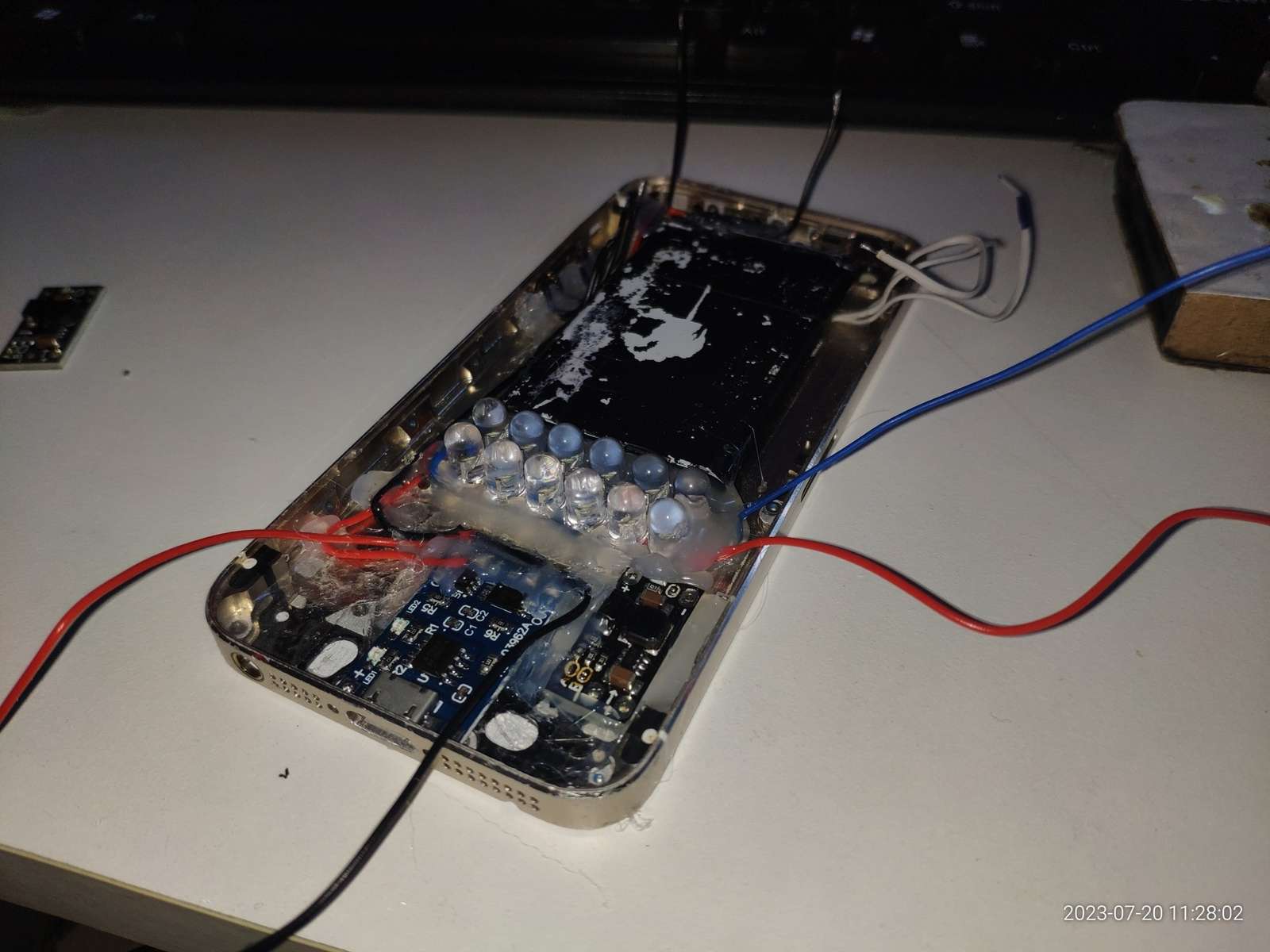 Ладно, идём дальше, светодиоды вспышки работают, и это хорошо, но есть и плохой нюанс, они выделяют очень много тепла при своей яркости, обычные светодиоды "грибочки" явно эффективнее будут как фонарик, теперь я не уверен, что буду использовать вспышку от iPhone в качестве фонарика, но точки подключения найдены: