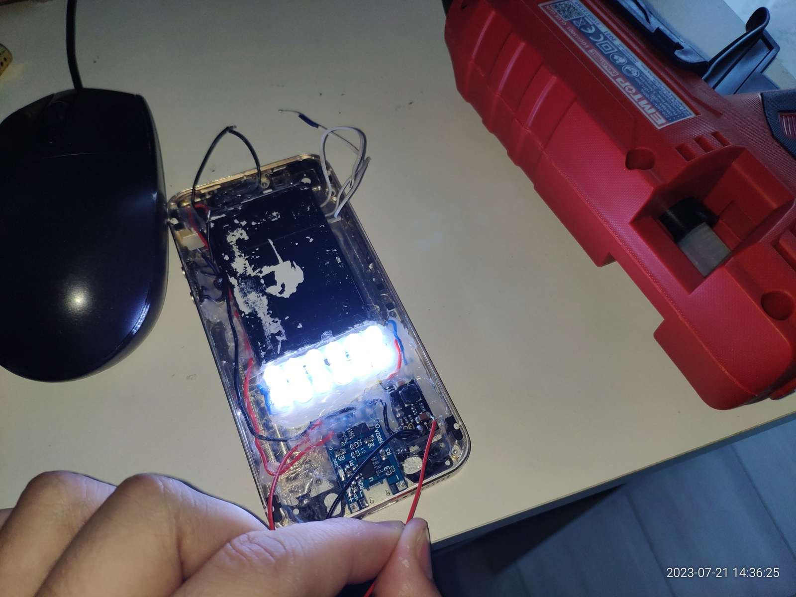 Проверив систему я обнаружил нерабочий сегмент, но проблема была в пайке, нужно было просто качественнее пропаять один контакт, и да, это я фотографировал со вспышкой, яркость вполне неплохая получилась у светодиодного модуля: