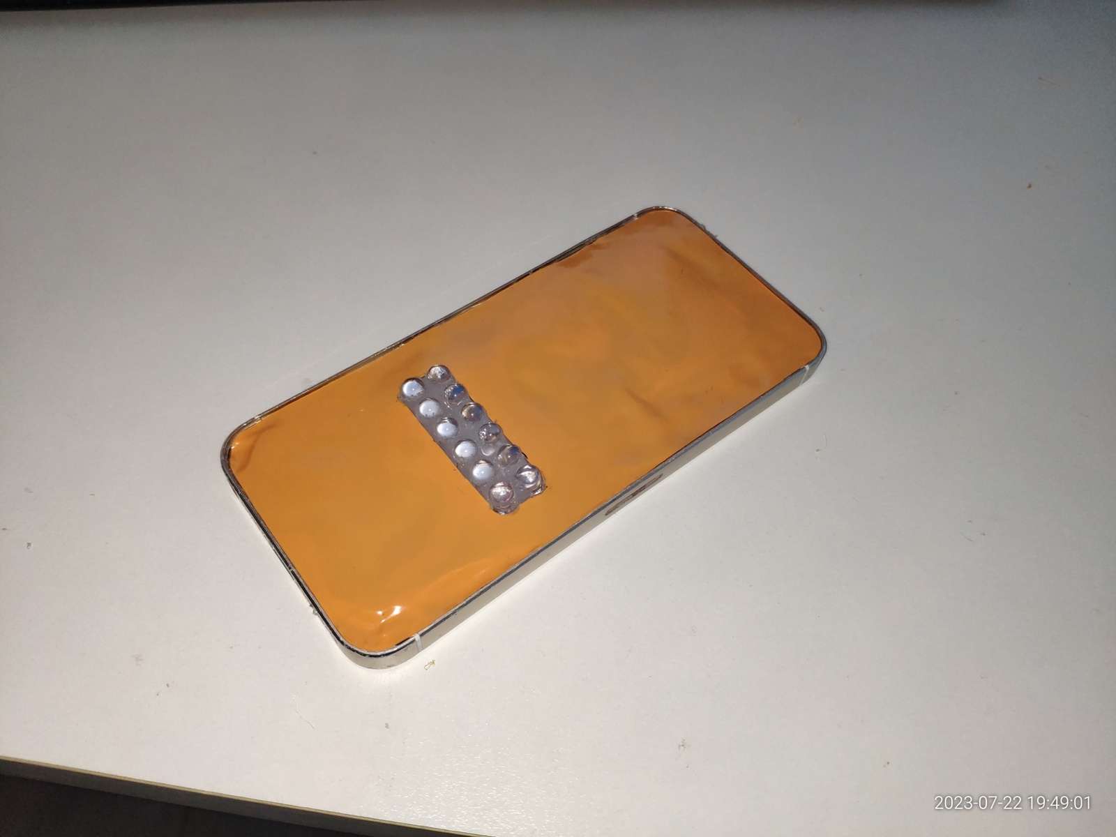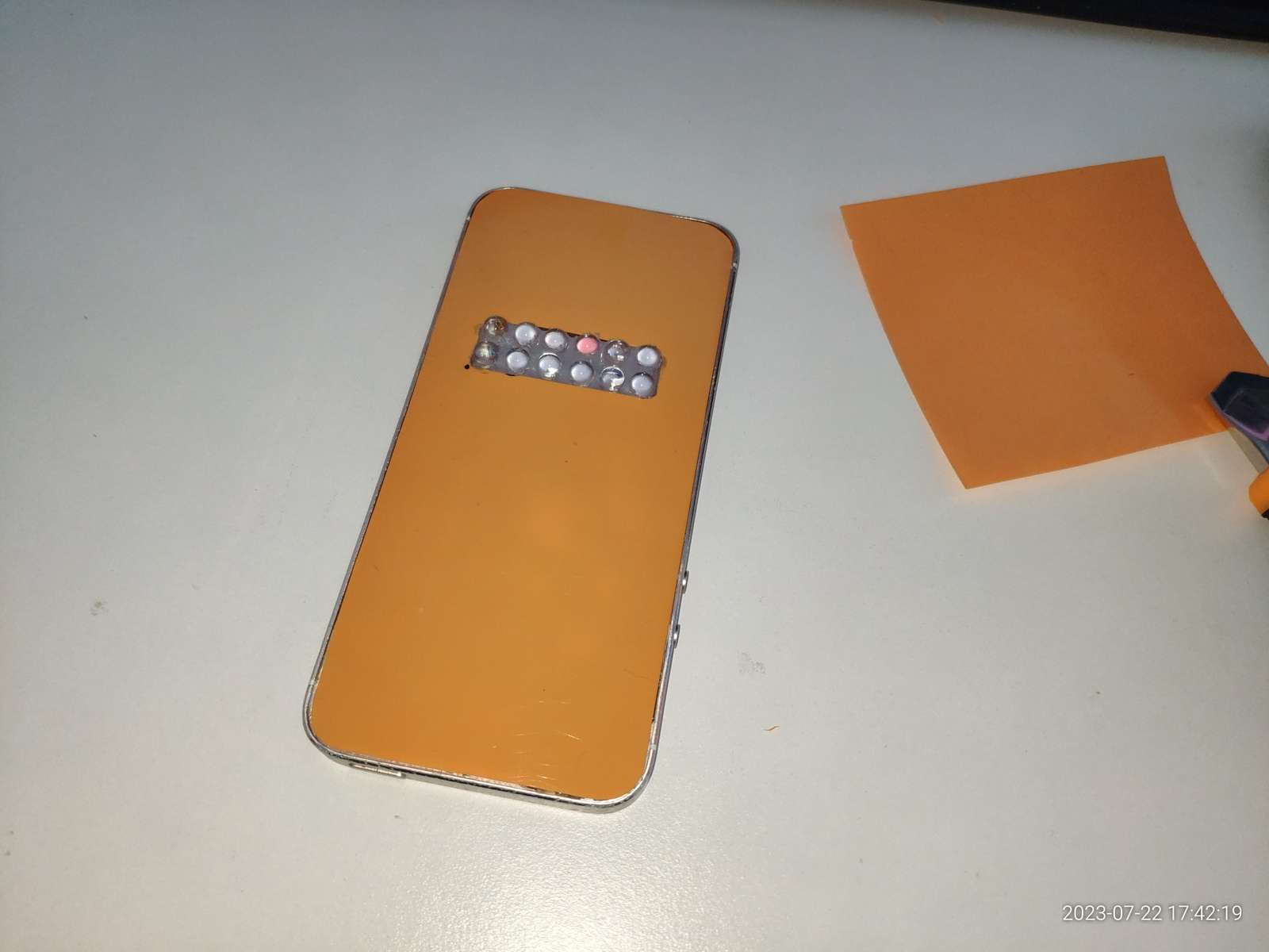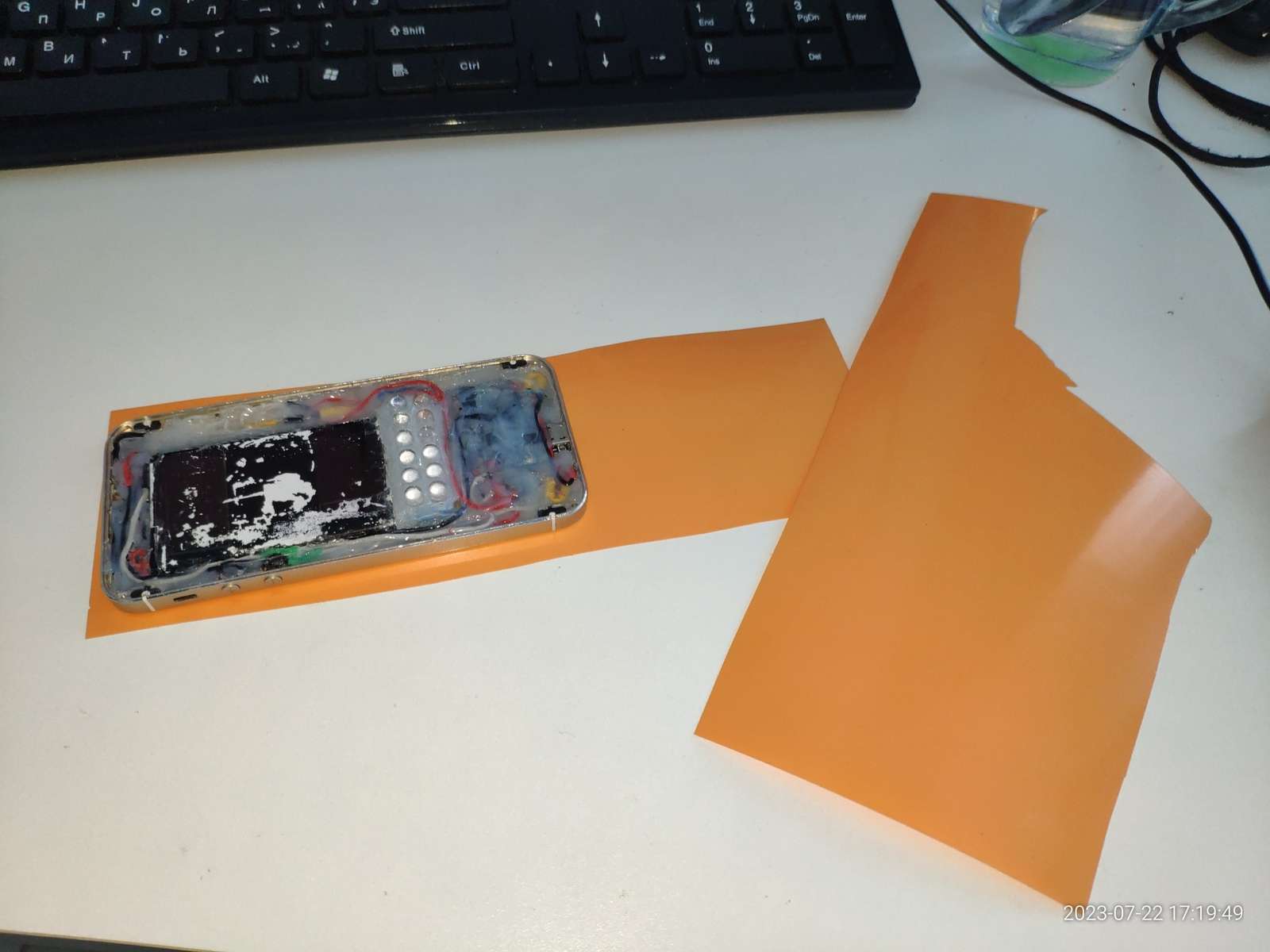 На этом можно было бы закончить... Но разве можно оставлять устройство в таком виде? Конечно же нет! Потому я достал некогда подобранный мусор с обочины, и отрежу от него кусочек для лицевой панели нового "iPhone":