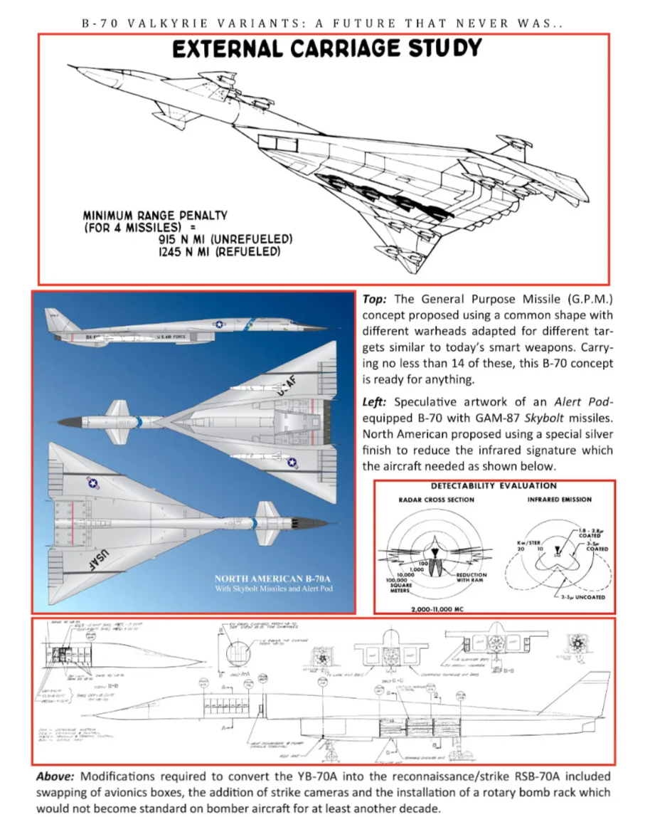 В документ включен рисунок, на котором изображён B-70, оснащённый системой Alert Pod. Другой концепт показывает "Валькирию", несущую не менее 14 "Ракет общего назначения".