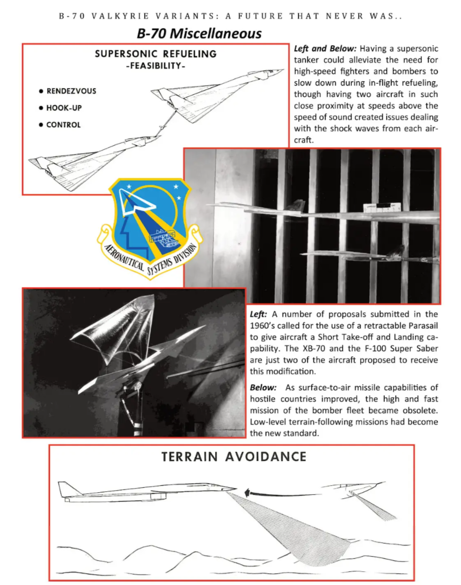 В документе рассматривается и ряд вариантов, не относящихся к бомбардировщикам. Некоторые из них имеют смысл, например, вариант танкера, который мог бы дозаправлять другие B-70, нуждающиеся в топливе, во время полётов.