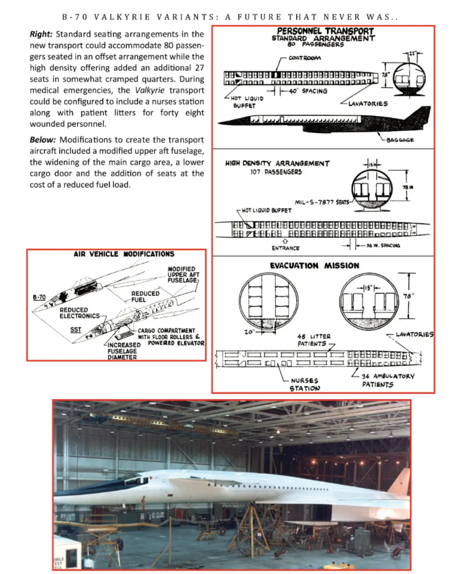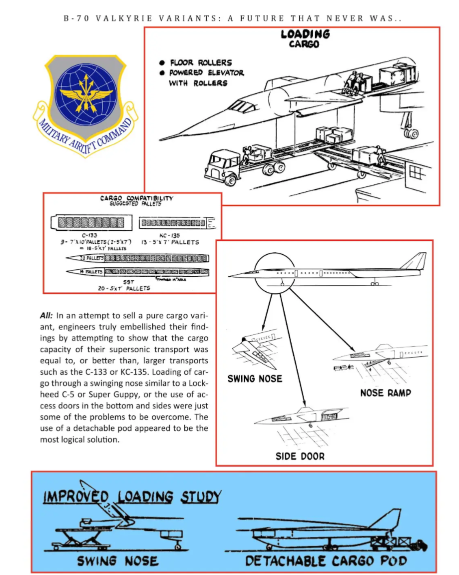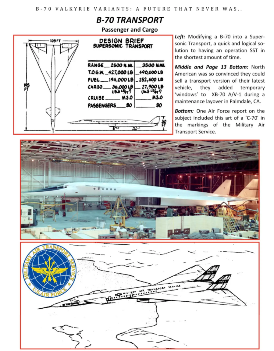 Историки AFMC отмечают, что неясно, позволила ли бы технология того времени сделать из B-70 экономически эффективный воздушный лайнер. "Пытаясь продать чисто грузовой вариант, инженеры действительно приукрасили свои выводы, пытаясь показать, что грузоподъёмность их сверхзвукового транспорта была равна или даже лучше, чем у более крупных транспортных машин, таких как C-133 или KC-135", - говорится в документе.