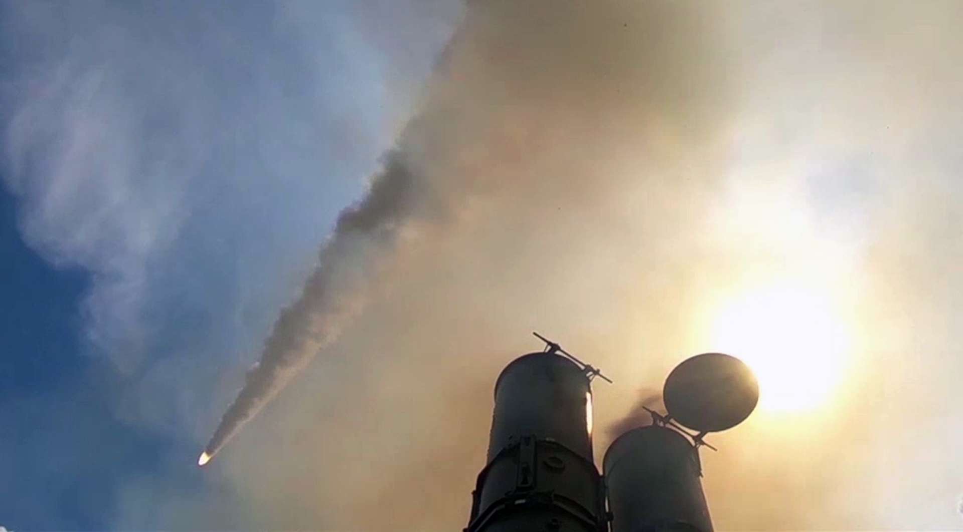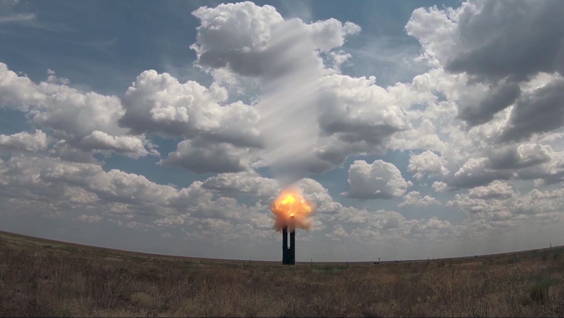 Кадр с испытаний С-500 МО РФ. Часть изображения над пусковой размыта, так что ракету не рассмотреть.