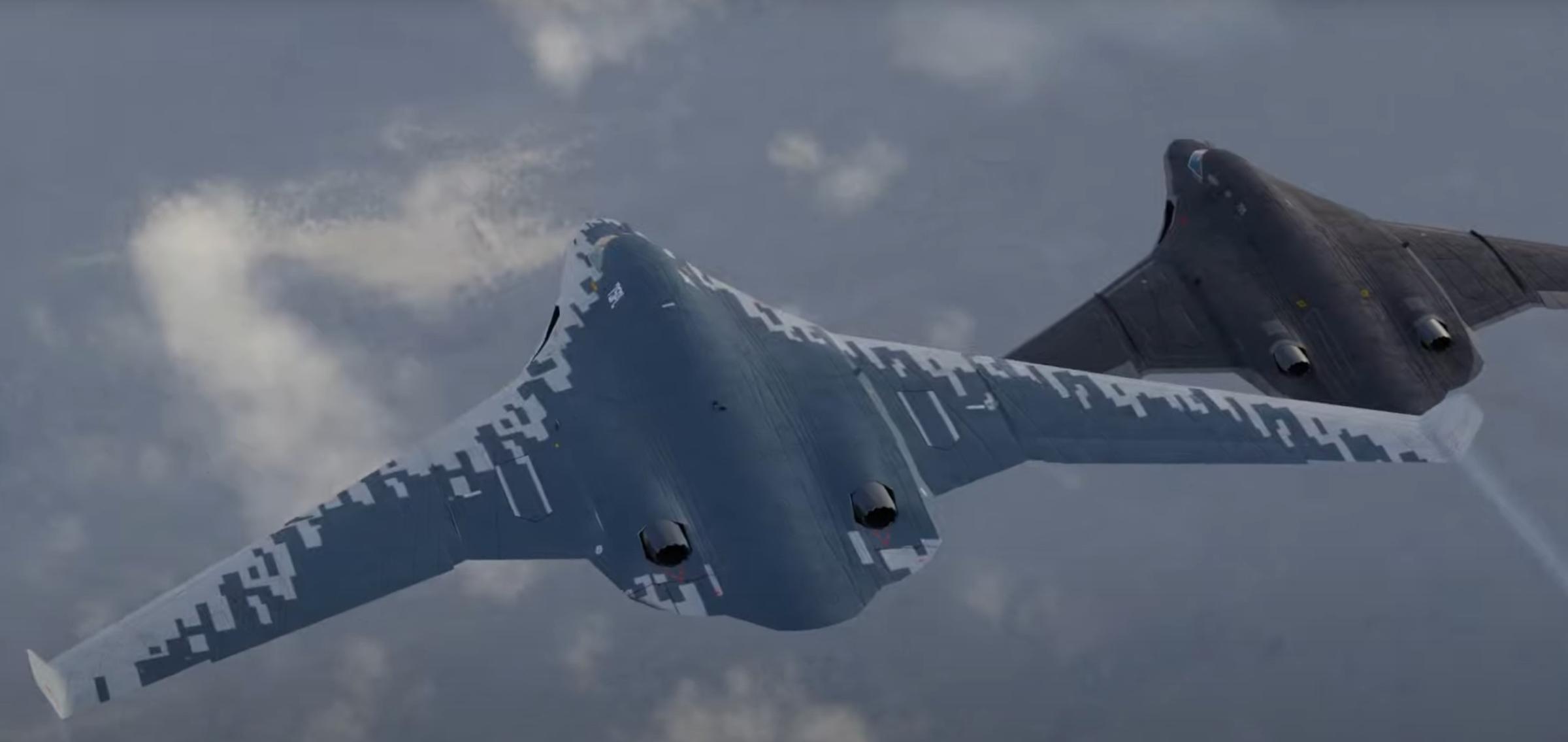 - Планер, выполненный по схеме «летающее крыло» с применением технологий малозаметности (стелс);