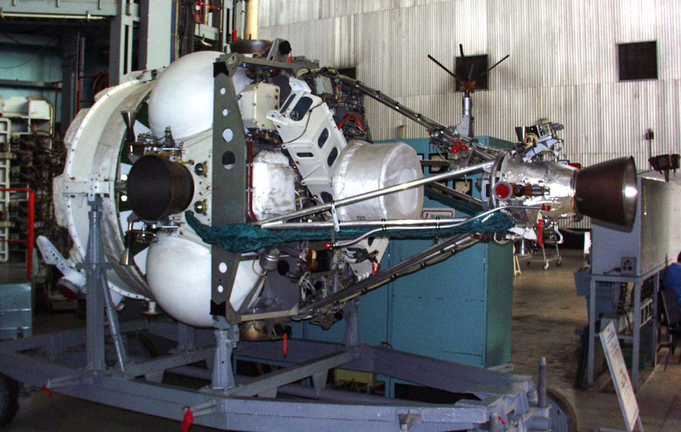 - В хвостовом двигательном отсеке размещался ЖРД с тягой 1.5 тс, 4 топливных бака (2 для горючего, 2 для окислителя) и 16 микродвигателей ориентации (тягой по 0.5 кгс каждый).
