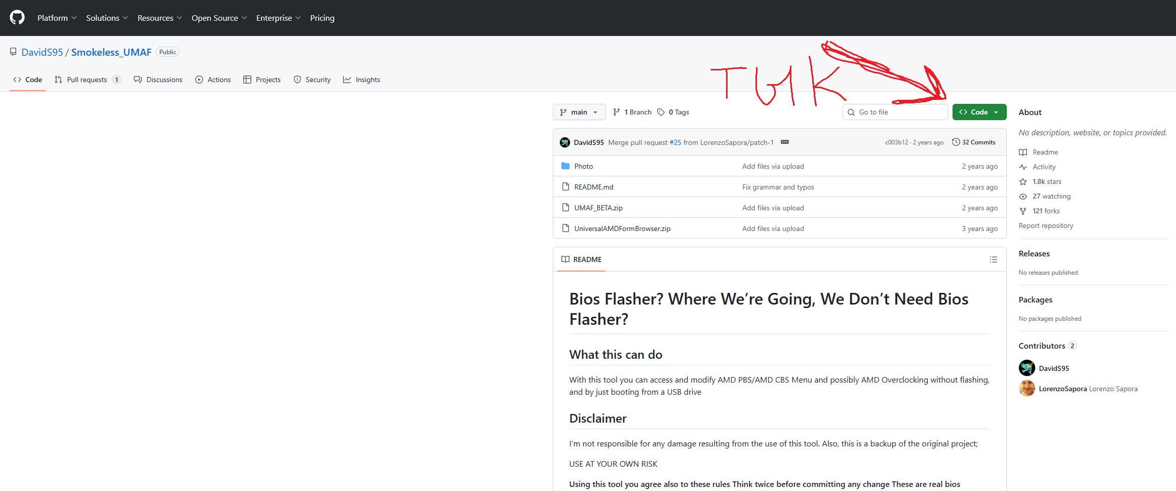 Предупреждён - значит вооружён. Идём дальше. Нажимаем на ссылку и попадаем на GitHub. Теперь нужно нажать на зелёную кнопку с надписью "<> Code".