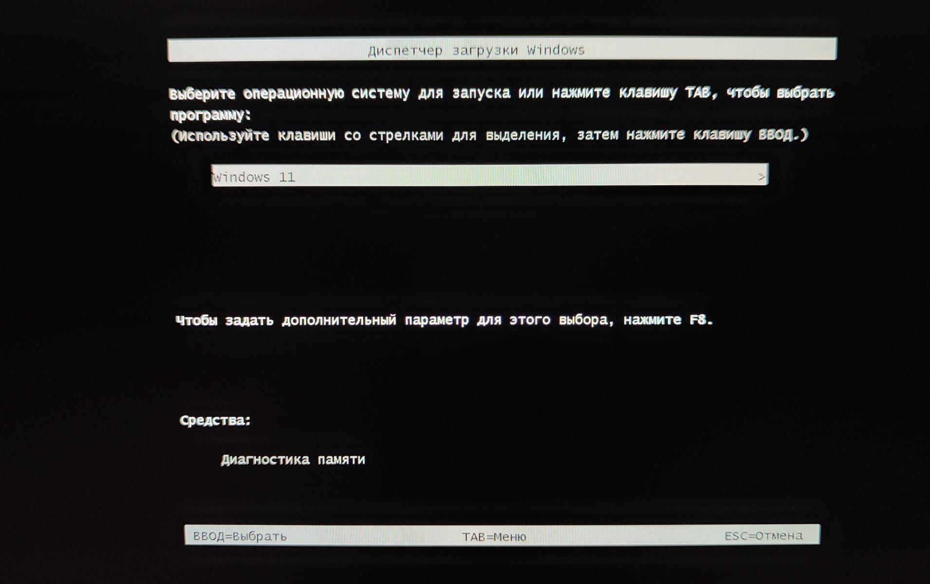 Если у вас вдруг открывается чёрное окно, в котором есть вариант только загрузки Windows, значит нажмите Esc и попробуйте ещё раз нажать на F12/Del или другую клавишу, в зависимости от вашей модели ноутбука.