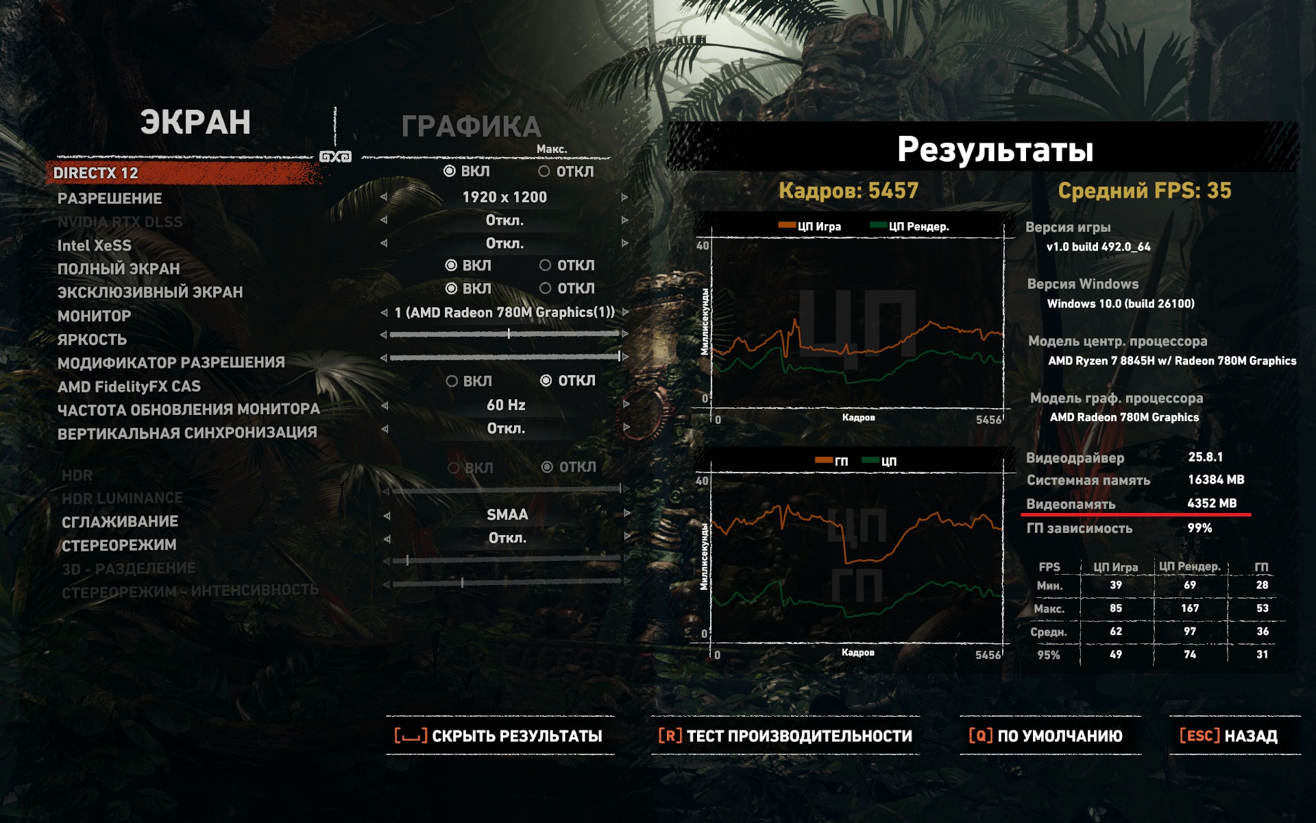 2. Предположим, что ситуация с фризами реальна, однако я не смог её воспроизвести в данной игре и на данной системе. Вероятно, ключевым фактором является скорость "видеопамяти", а точнее ОЗУ. Всё-таки LPDDR5X с частотой 6400 MT/s гораздо быстрее той же DDR4 даже с настроенными таймингами. Поэтому никаких задержек и не было заметно.