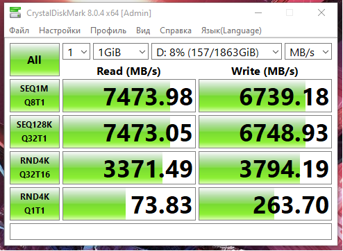 Вот такие скорости выдаёт наш товарищ, при том, что он уже заполнен на 157Гб.