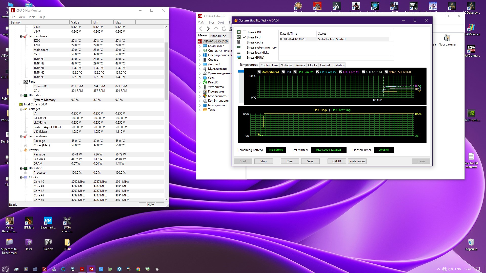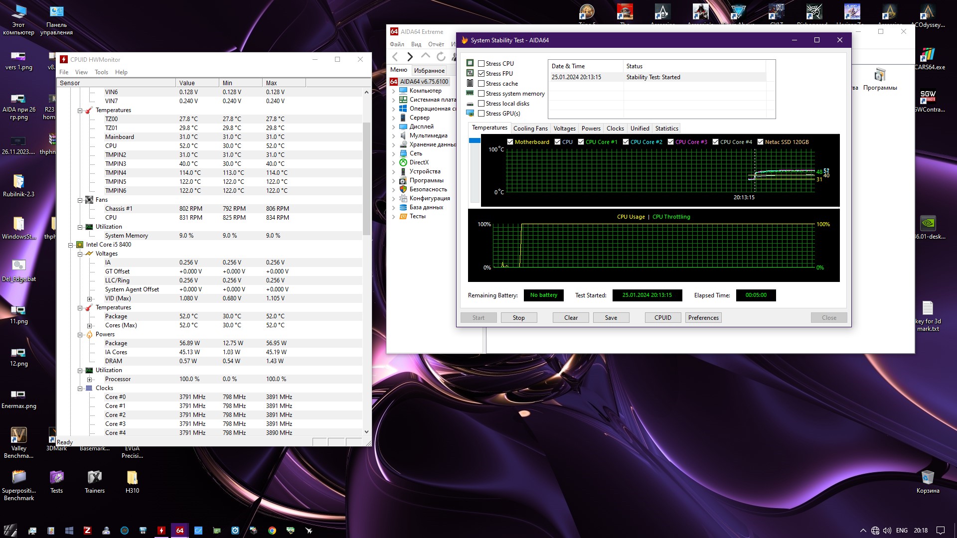Ничего горячего и жрущего у меня нет, поэтому тестировать буду на i5-8400 с тем самым кулером Jonsbo CR-1000 v2 PRO Color.