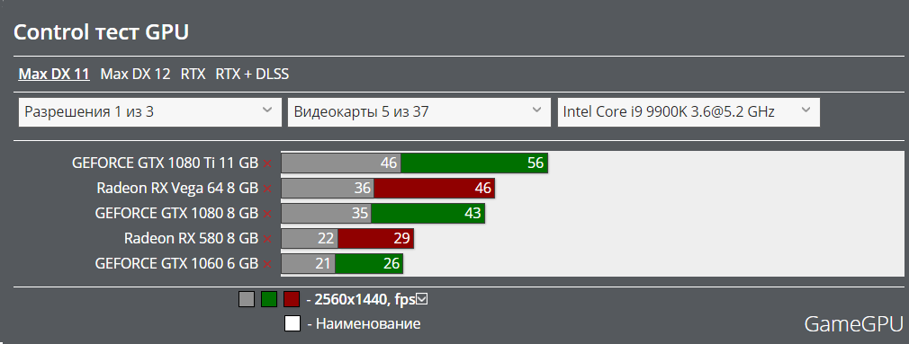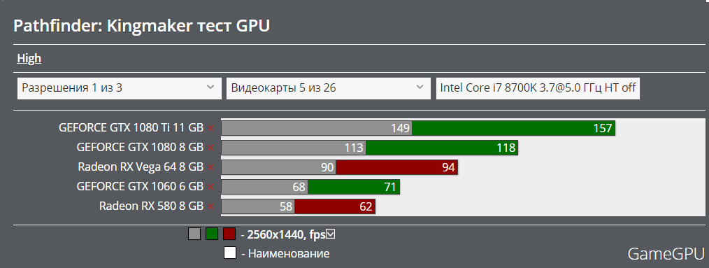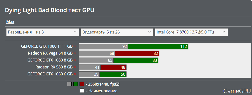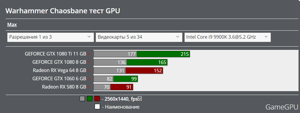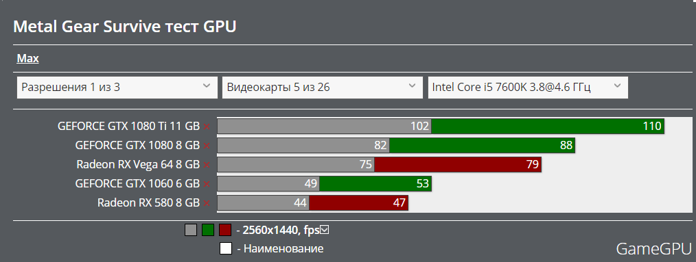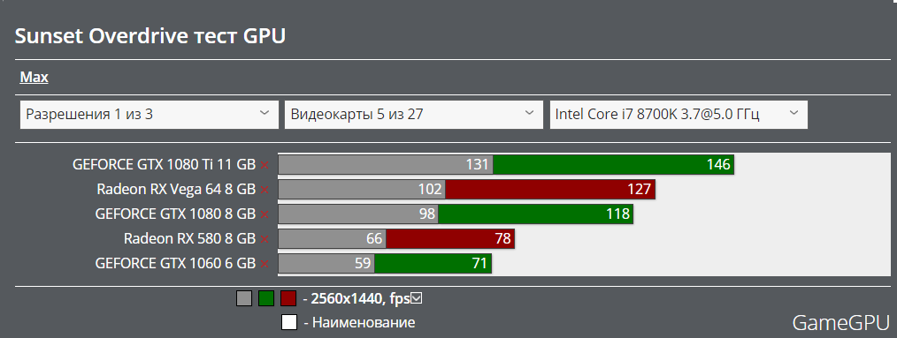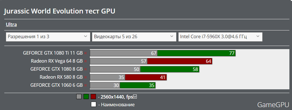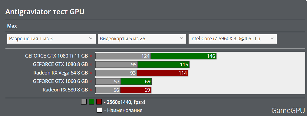 Разрешение для всех тестов выбрано 2560х1440 потому что для 4K карты все же слабоваты, особенно 1066 и 588, а при 1920x1080 было немало случаев, когда фпс упирался в потолок начиная с видеокарты gtx 1070 и выше.