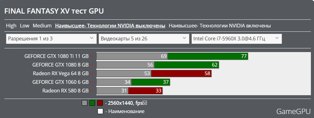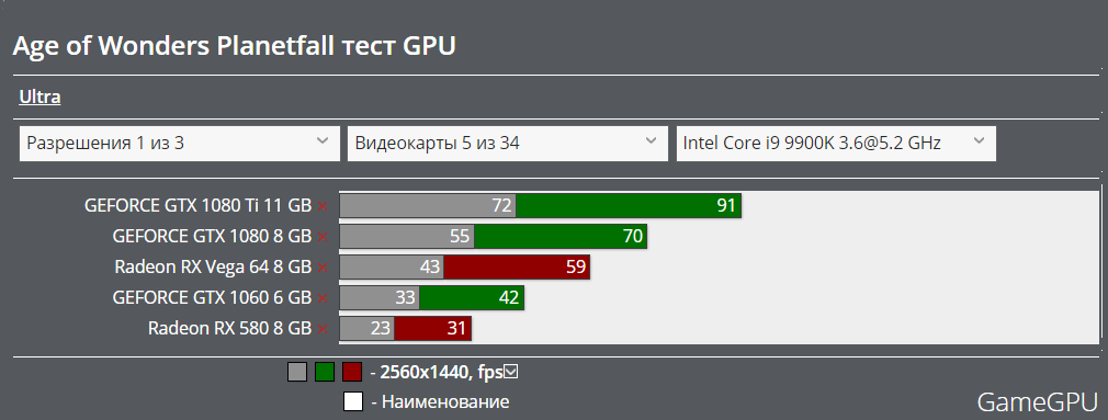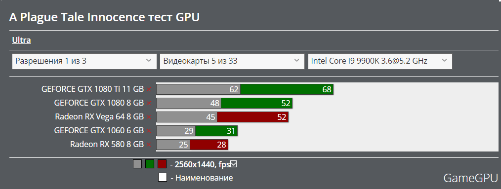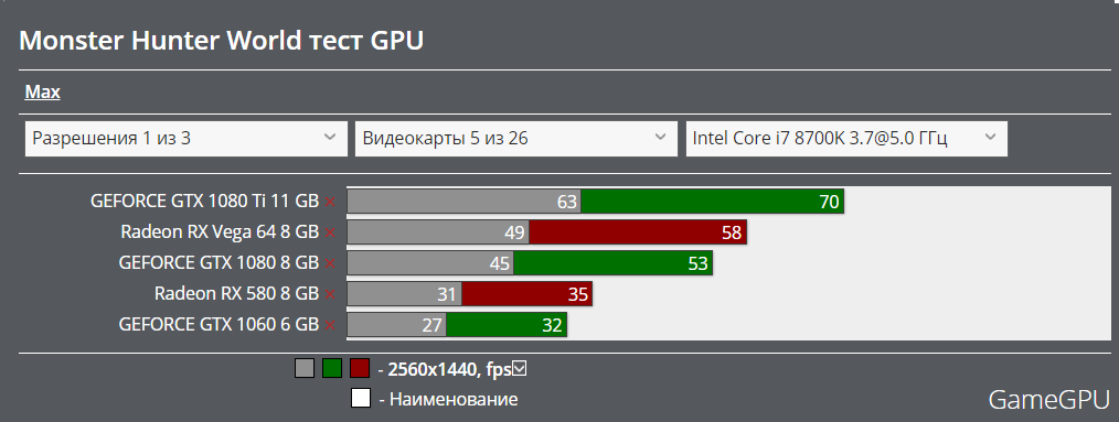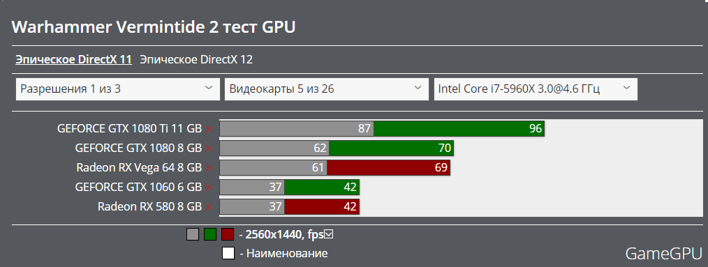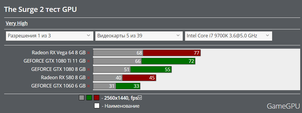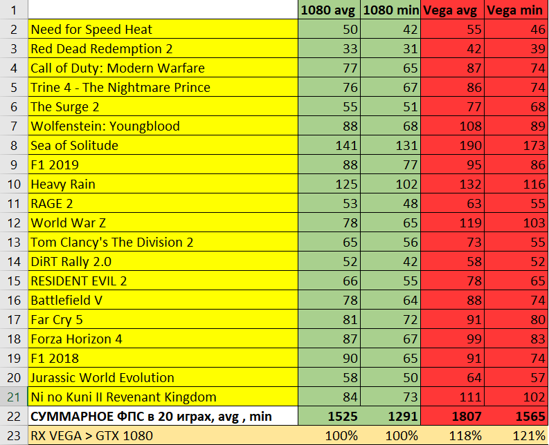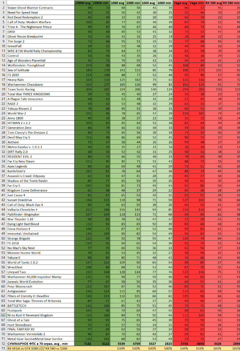 1080 и 1066 vs Vega 64 и RX 588 в 70 играх Quad HD и без Unreal engine