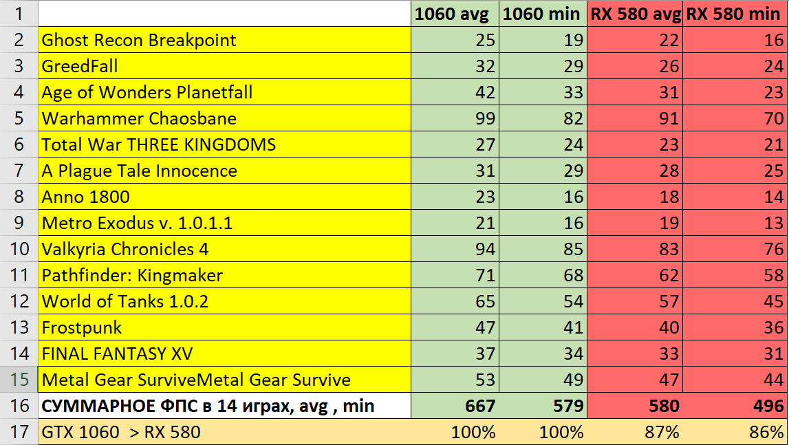 [AVG FPS] RX 580 = GTX 1060 [MIN FPS] RX 580 = GTX 1060 X 0.97