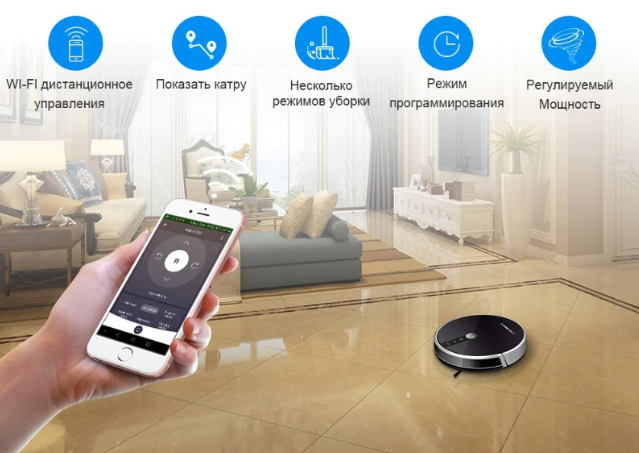 Автономную работу пылесоса в течение 1,40 часа обеспечивает аккумулятор ёмкостью 2500 мАч. Роботом очень легко управлять с помощью смартфона через Wi-Fi-соединение, предварительно установив на гаджет соответствующее мобильное приложение из Play Маркет, которое называется TuyaSmart.