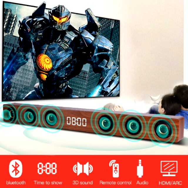 Стильная деревянная звуковая панель Tosmart D80 в стиле ретро украсит любой интерьер или рабочий стол и будет прекрасным дополнением к телевизору, компьютеру, ноутбуку или мобильному устройству, существенно расширив их звуковые возможности. Саундбар получил шесть динамиков мощностью по 5 Вт, соединение по технологии Bluetooth 4.2, а также разъёмы RCA, AUX и HDMI. Габариты устройства составляют 800 х 80 х 70 мм.