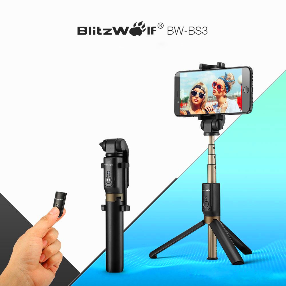 Выдвижной селфи-штатив BlitzWolf BS3 - настоящая находка для любителей смартфонной съёмки. Работает этот моноподный штатив без проводов, так как имеет на борту модуль Bluetooth 3.0. Специальный шарнир, установленный в верхней части этой портативной треноги, позволяет выполнять полный поворот смартфона вокруг своей оси на 360 градусов.