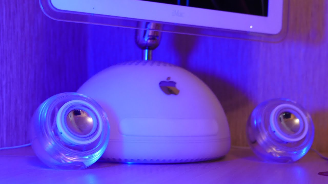 Также стоит упомянуть колонки, которые не поместились в маленький iMac, и их пришлось делать отдельно. Их корпус полностью прозрачный, внутри видно устройство динамиков и припаянный к ним провод. Звук остался крутым, а также добавился эффект стерео.