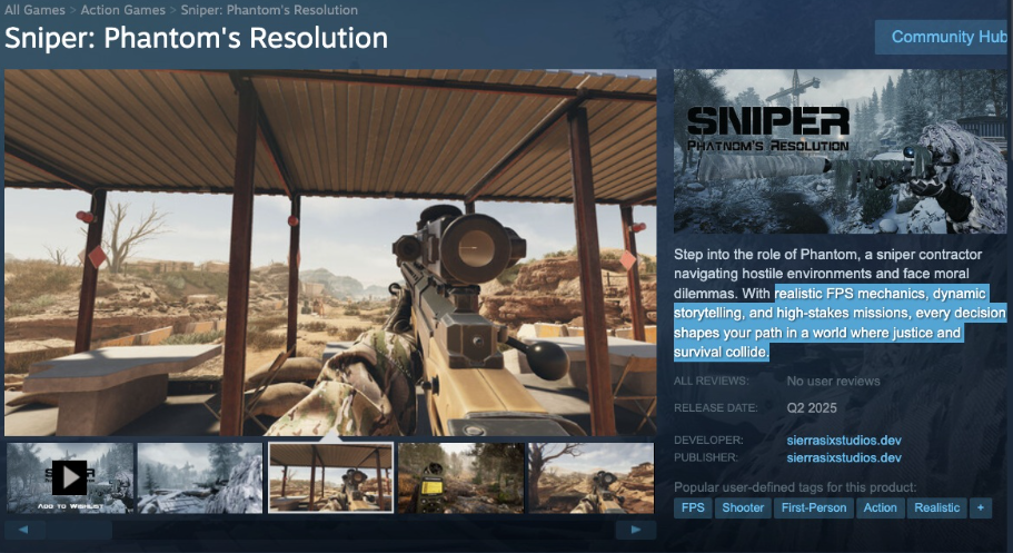 На этот раз в Steam обнаружена новая вредоносная программа, выпущенная в виде многообещающей демоверсии. Речь идет о игре Sniper: Phantom's Resolution, шутере от первого лица с «реалистичной механикой, динамичным повествованием и рискованными миссиями».