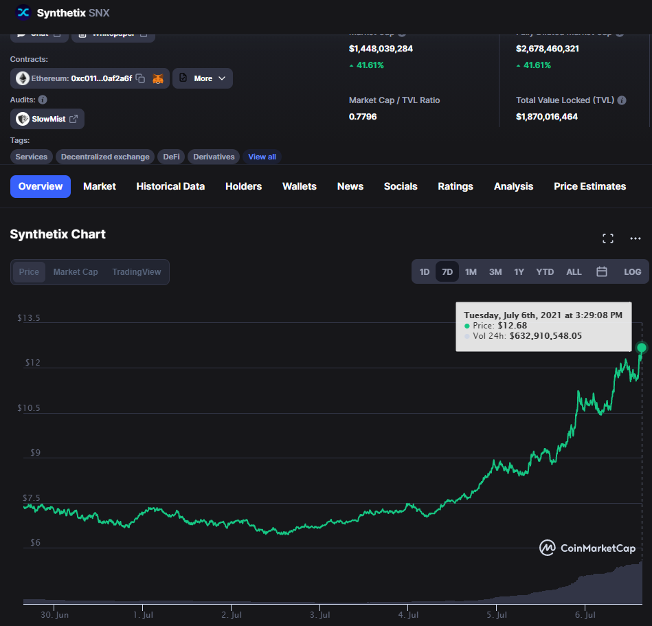 Резкий рост курса токена SNX ошеломил инвесторов крипторынка - всего за неделю многие из нас стали богаче почти в два раза.