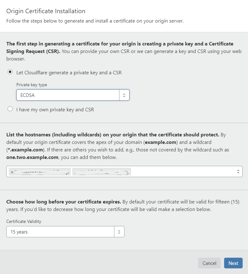 Преимущество данного способа в том, что полученный сертификат будет работать только с бэк-ендом Cloudflare. Вам также не нужно связываться с Let's Encrypt и перевыпускать себе сертификат каждые 90 дней.