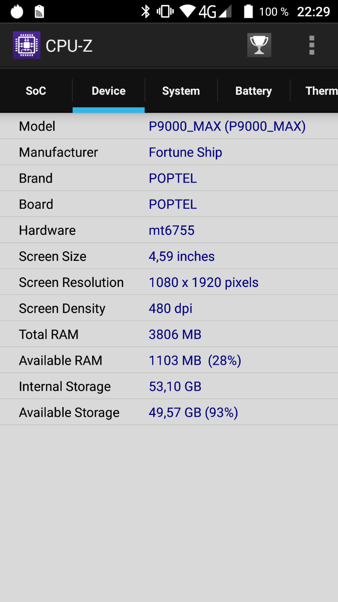 В AnTuTu poptel P9000 Max набирает около 55000 баллов